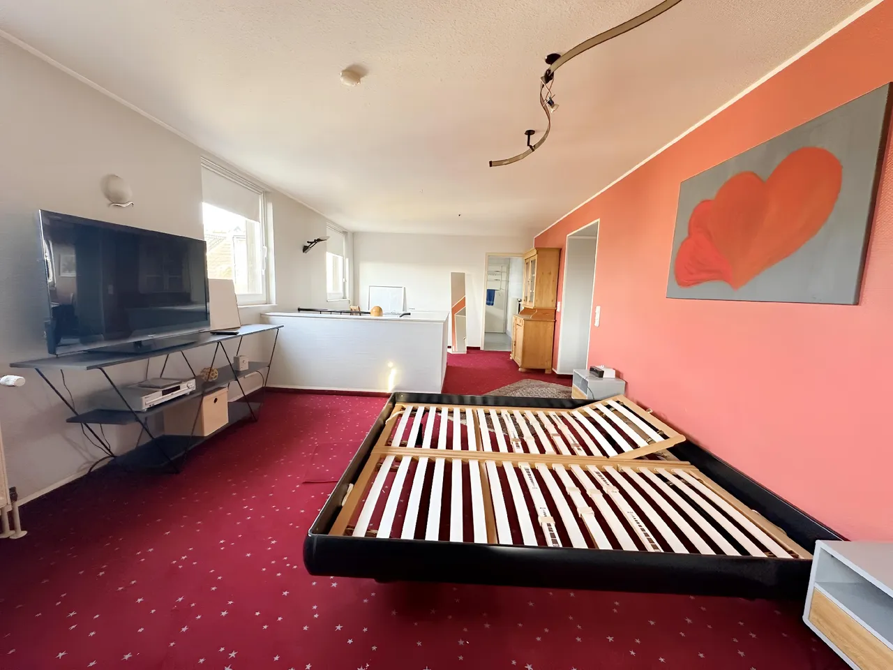 Über eine elegante Wendeltreppe erreicht man das 2. Obergeschoss. Hier erwartet Sie ein großzügiges Schlafzimmer, das dank seiner offenen Gestaltung ein luftiges Wohngefühl vermittelt. Angrenzend befindet sich das Tageslichtbad mit Wanne und Dusche sowie drei zusätzliche Räume, die sich ideal als Ankleidezimmer, weiteres Arbeitszimmer oder Gästezimmer nutzen lassen. Die großen Fenster sorgen auch auf dieser Ebene für eine angenehme Lichtdurchflutung und eine einladende Atmosphäre.