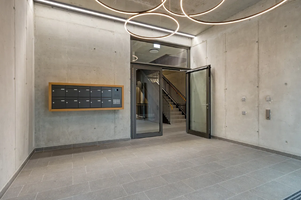 - Wände in moderner Sichtbeton-Optik für zeitgemäßes, industrielles Ambiente