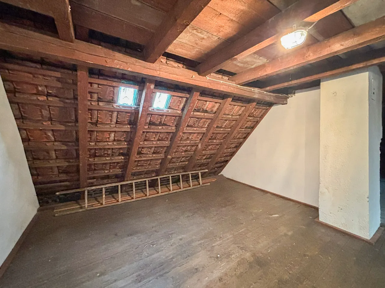 Im Inneren erwartet Sie eine gemütliche Wohnatmosphäre, die durch sichtbare Holzbalkenelemente in einigen Räumen des Erdgeschosses zusätzlich unterstrichen wird. Die Etagen sind über eine schöne, alte Holztreppe miteinander verbunden. Das Wohnzimmer bildet das Herzstück des Hauses – hier sorgt ein Kaminofen an kühleren Tagen für wohlige Wärme und schafft eine behagliche Stimmung. Ergänzt wird die Wärmeversorgung durch eine moderne Gastherme, die erst 2020 erneuert wurde. Das Badezimmer präsentiert sich in einer angenehmen Größe und ist in einem zeitlos-neutralen Stil gehalten, sodass es problemlos an individuelle Gestaltungsvorlieben angepasst werden kann. Ein weiterer Pluspunkt: Im Dachgeschoss besteht die Möglichkeit, zusätzlichen Wohnraum zu schaffen – ideal für ein weiteres Schlafzimmer. Zu beachten ist, dass die Deckenhöhe in einigen Wohnräumen teilweise nur etwa 2 Meter beträgt, was jedoch dem wohnlichen Charakter keinen Abbruch tut.