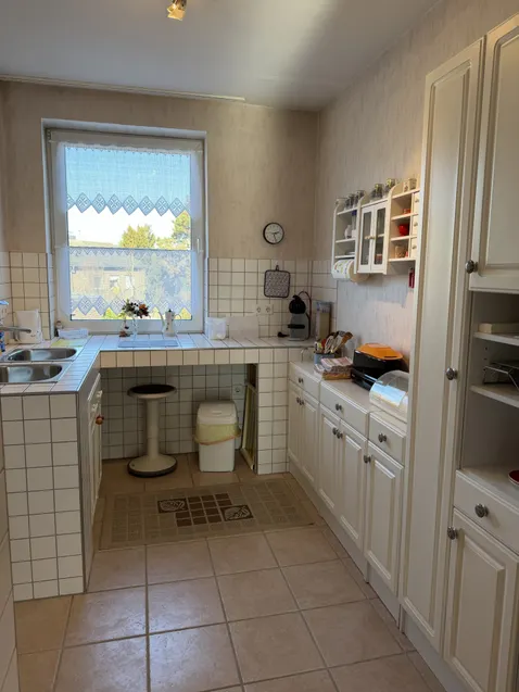 Die Wohnung verfügt über eine Erdgas-Etagenheizung von Viessmann aus dem Jahr 2005, die als Kombigerät mit einem Warmwasserspeicher ausgestattet ist. In Flur, Küche und Kinderzimmer/Arbeitszimmer sind Fliesen verlegt, während im Schlafzimmer Laminat und im Wohnzimmer Fertigparkett vorhanden sind. Das innenliegende Badezimmer ist mit einer Badewanne ausgestattet. Ein Balkon mit Südausrichtung, der derzeit saniert wird, ergänzt den schönen Grundriss. Die Wohneinheit umfasst insgesamt sechs Parteien und zeichnet sich durch eine sehr gute Nachbarschaft aus. Das Dach wurde in den 1980er Jahren neu gedeckt. Ein großer, separater Kellerraum bietet zusätzlichen Stauraum. Weitere Abstellfläche befindet sich im Dachboden. In der Küche ist ein Anschluss für eine Waschmaschine vorhanden. Die Einbauküche ist ohne Elektrogeräte. Die Elektroinstallation ist älter. Die weißen Kunststofffenster sind isolierverglast, jedoch ohne Rollläden.