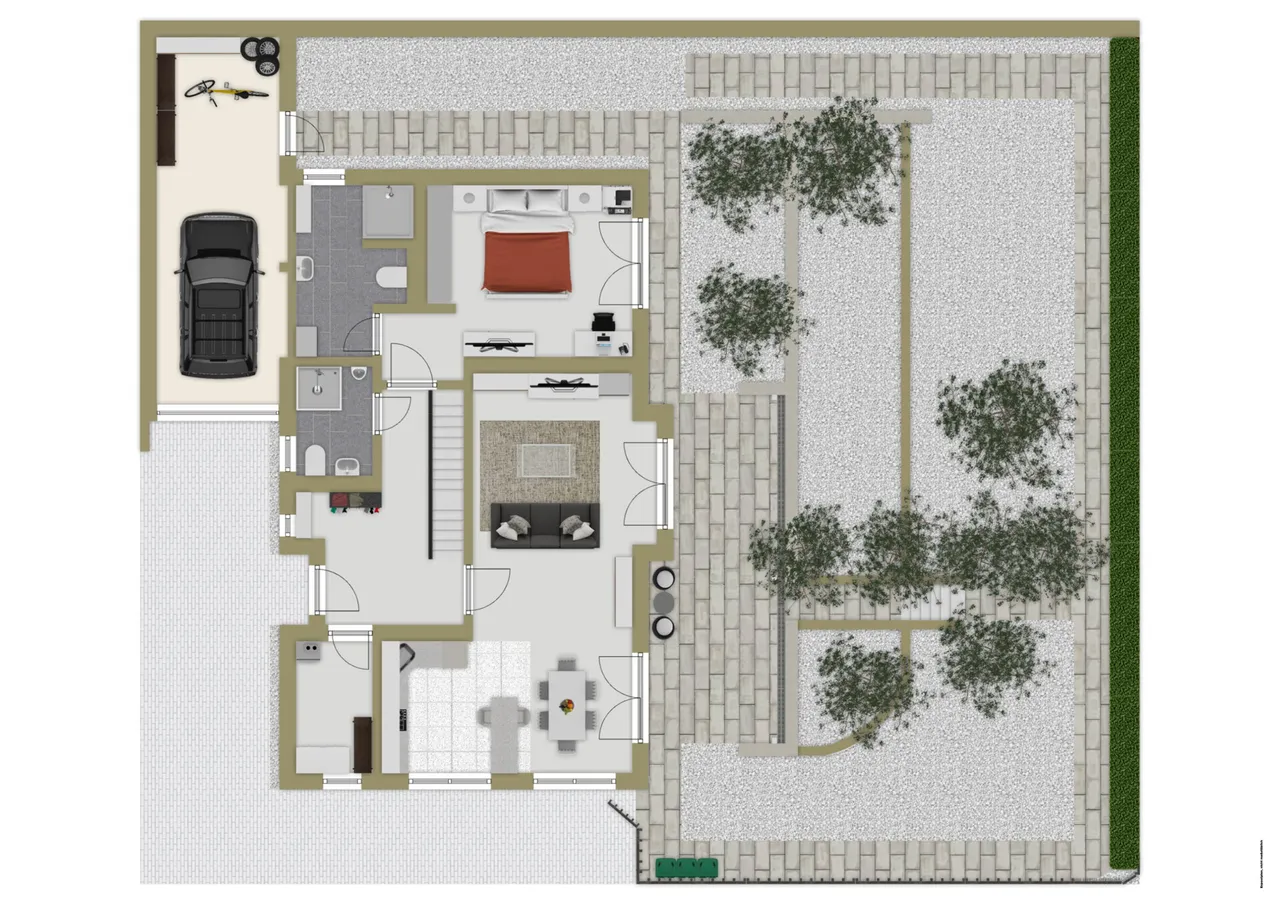 - Separate Stellplätze vor dem Haus mit direktem Zugang zum Garten – praktisch für Besucher oder den Zweitwagen