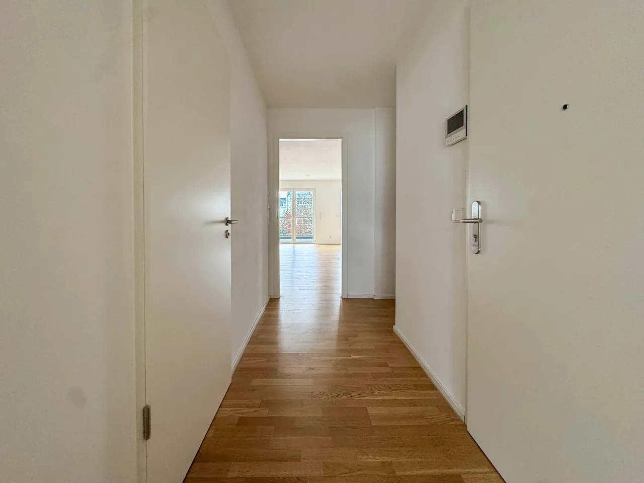 Das Schlafzimmer ist ruhig gelegen und bietet ausreichend Stellfläche für Möbel. Das moderne Badezimmer ist barrierefrei gestaltet und komfortabel ausgestattet. Ein praktischer Flur verbindet alle Räume und sorgt für eine angenehme Wohnstruktur.
