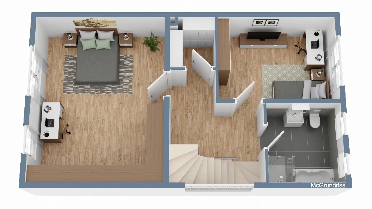 Im Obergeschoss befinden sich zwei helle Schlafzimmer, ein praktischer Abstellraum sowie das Tageslichtbad mit Dusche und Badewanne. Das wohnlich ausgebaute Dachgeschoss bietet zusätzlich zwei weitere Räume sowie ein separates WC mit Fenster und eignet sich hervorragend als weitere Kinderzimmer, Gästezimmer oder Homeoffice.