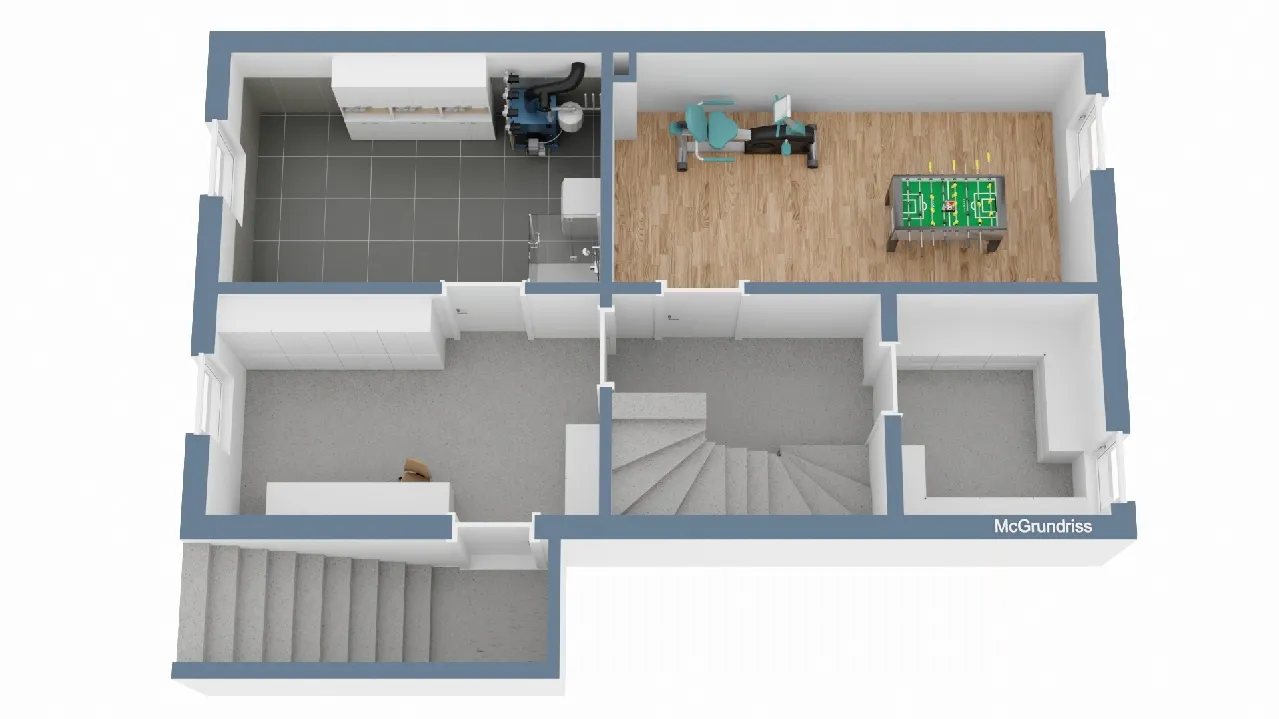 Der ca. 50 m² große Vollkeller rundet das Platzangebot ab: Neben einem Hauswirtschaftraum und dem Heizungskeller mit zusätzlicher Duschmöglichkeit stehen zwei weitere Hobby- oder Abstellräume zur Verfügung. Über eine Außentreppe gelangen Sie direkt in den überdachten Terrassenbereich und den Garten.