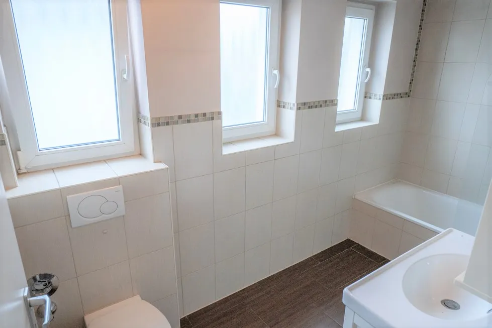 Alle Wohnungen verfügen über Tageslichtbäder, im Erd-/ und Obergeschoss jeweils mit Badewanne, im Dachgeschoss mit Dusche.