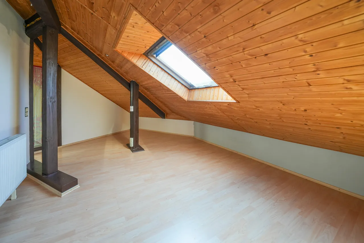 Diese elegante Wohnung im ersten Obergeschoss eines Zweifamilienhauses verfügt über eine Wohnfläche von 80 m² und ist zusätzlich durch zwei ausgebaute Räume auf dem Dachboden mit einer Nutzfläche von ca. 32 m² erweitert. Das geräumige Wohnzimmer, das Herz der Wohnung, führt hinaus auf eine großzügige Dachterrasse, die einen herrlichen Freiraum für Erholung und Unterhaltung unter freiem Himmel bereitstellt.