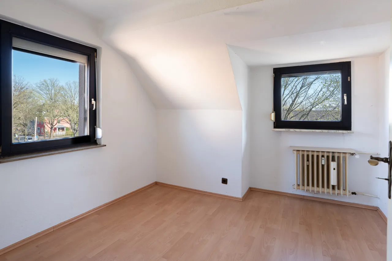 Das Haus ist voll unterkellert und verfügt über ein ausgebautes Dachgeschoss, welches bereits im Jahr 1955 erweitert wurde. Die Geschosse vom Erdgeschoss bis zum Dachgeschoss weisen einen nahezu identischen Schnitt auf und bieten jeweils drei gut geschnittene Zimmer, wodurch sich vielseitige Nutzungsmöglichkeiten – beispielsweise für Familien oder Mehrgenerationenwohnen – ergeben.