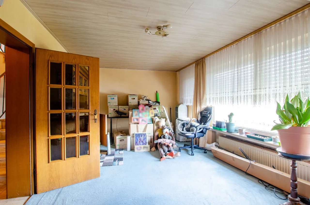 Willkommen in Ihrem neuen Zuhause einem charmanten Einfamilienhaus, das 1979 erbaut wurde und in einer ruhigen, idyllischen Nachbarschaft liegt. Mit einer großzügigen Wohnfläche von 91 m² bietet dieses geräumige Haus ausreichend Platz für die ganze Familie. Das Haus befindet sich auf einem weitläufigen Grundstück von 716 m², das Ihnen viel Platz für Gartenarbeit und Outdoor-Aktivitäten bietet. Der Innenbereich des Hauses überzeugt durch eine durchdachte Raumaufteilung und viel Tageslicht. Die großzügigen Zimmer ermöglichen individuelle Gestaltungsmöglichkeiten und schaffen eine einladende Atmosphäre. Der Keller bietet zusätzlichen Stauraum und kann nach Belieben als Hobbyraum oder Werkstatt genutzt werden. Die Garage und der Stellplatz bieten genügend Platz für Ihre Fahrzeuge. Das Haus ist gemäß der WEG als Wohnungseigentum aufgeteilt. Nutzen Sie die Chance, dieses einzigartige Haus zu Ihrem neuen Zuhause zu machen und gestalten Sie es ganz nach Ihren Vorstellungen. Hier wohnen Sie in einer harmonischen Umgebung, die sowohl Ruhe als auch Nähe zu allen wichtigen Annehmlichkeiten des Lebens bietet. Lassen Sie Ihrer Kreativität freien Lauf und genießen Sie das Leben in diesem bezaubernden Zuhause!