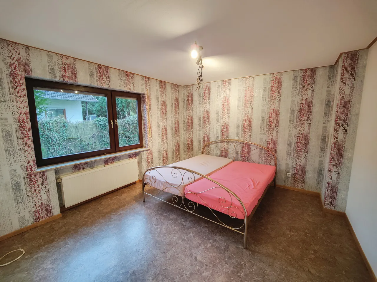 So wäre z.B. eine barrierefreie Wohnung im Souterrain denkbar, die über 2 Zimmer Küche und Bad verfügt. Weitere Kellerräume könnten der Wohnung zugeordnet werden. Alternativ kann der Wohnbereich im UG auch der Wohnung im EG zugeordnet werden, da es eine zentrale Innentreppe gibt.Im Erdgeschoss befindet sich der Hauptwohnbereich mit seinen 3 Zimmern, Küche und Bad. Vom Wohnzimmer aus gelangt man auf eine große überdachte Terrasse, die an der Rückseite des Hauses errichtet wurde. Straßenseitig befindet sich ein großer Balkon mit mehren Zugängen und herrlichem Ausblick in die Umgebung. Auf dem Grundstück wurde noch eine Gartenhütte platziert, die als Abstell- oder Partyhütte dienen könnte.