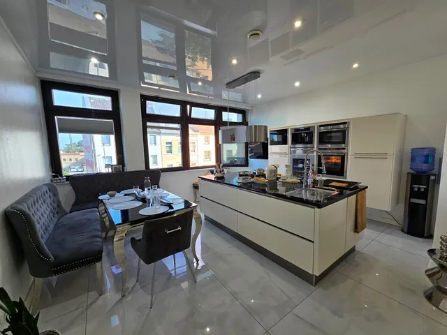 Hier ist Ihre hochwertig kernsanierte Immobilie. Im Zentrum von Mönchengladbach, unweit des Hauptbahnhofs. Für Eigennutzer und Kapitalanleger. Die sehr helle, ca.140m² große Einheit, befindet sich im 2.OG eines markanten Wohn-Geschäftshauses. 5 Zimmer, offene, hochwertige Einbauküche mit Küchenblock Granitplatte, neues Bad mit Whirlpool-Wanne und Gäste-WC. Die Einheit wurde vom Estrich bis zur Decke nach hochwertigstem Neubaustandard 2022-2023 saniert. Alle Installationen, wie Elektrik, Leitungen, etc. wurden komplett erneuert. Neu verlegte Fußbodenheizung. Fußböden hochwertig gefliest mit großen Marmor-Fliesen. Abstellraum und HWR für Waschmaschine, Trockner, etc. Sämtliche Räume mit einer kompletten Frontseite, durchgängiger, sehr großer Alu-Eloxal-Fensterfront. Ca. 3m Raumhöhe. Auch ein Aufzug ist im Haus.