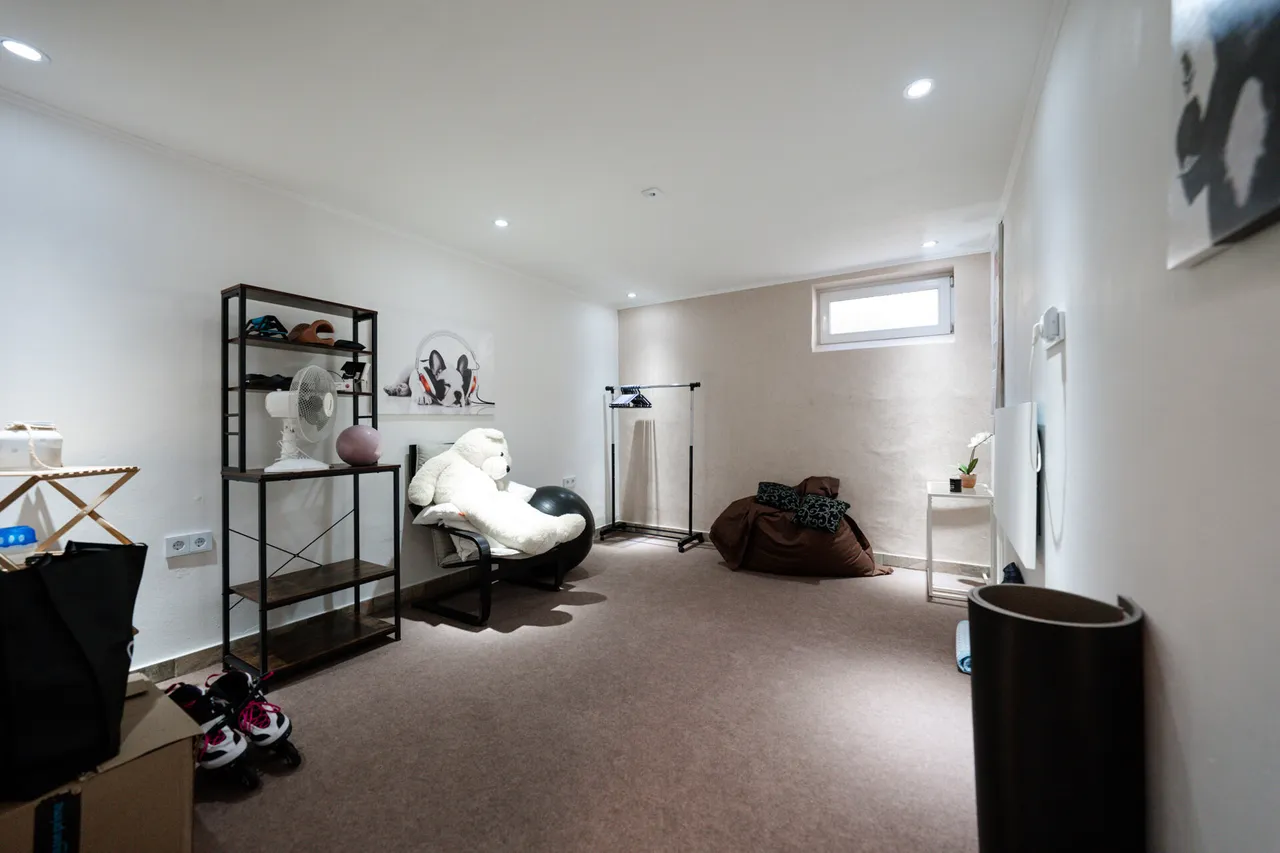 Besonders hervorzuheben ist der voll unterkellerte Bereich, ein Ort voller Möglichkeiten: Zwei vielseitige Räume, die als Gästezimmer, Home-Office, Hobbyatelier oder Spielbereich genutzt werden können, und ein vollwertiges Kellerbad mit moderner Dusche machen den Keller zu einem eigenständigen Lebensbereich – ein Rückzugsort für die Familie, der Raum für Ruhe, Kreativität und Spaß zugleich bietet.