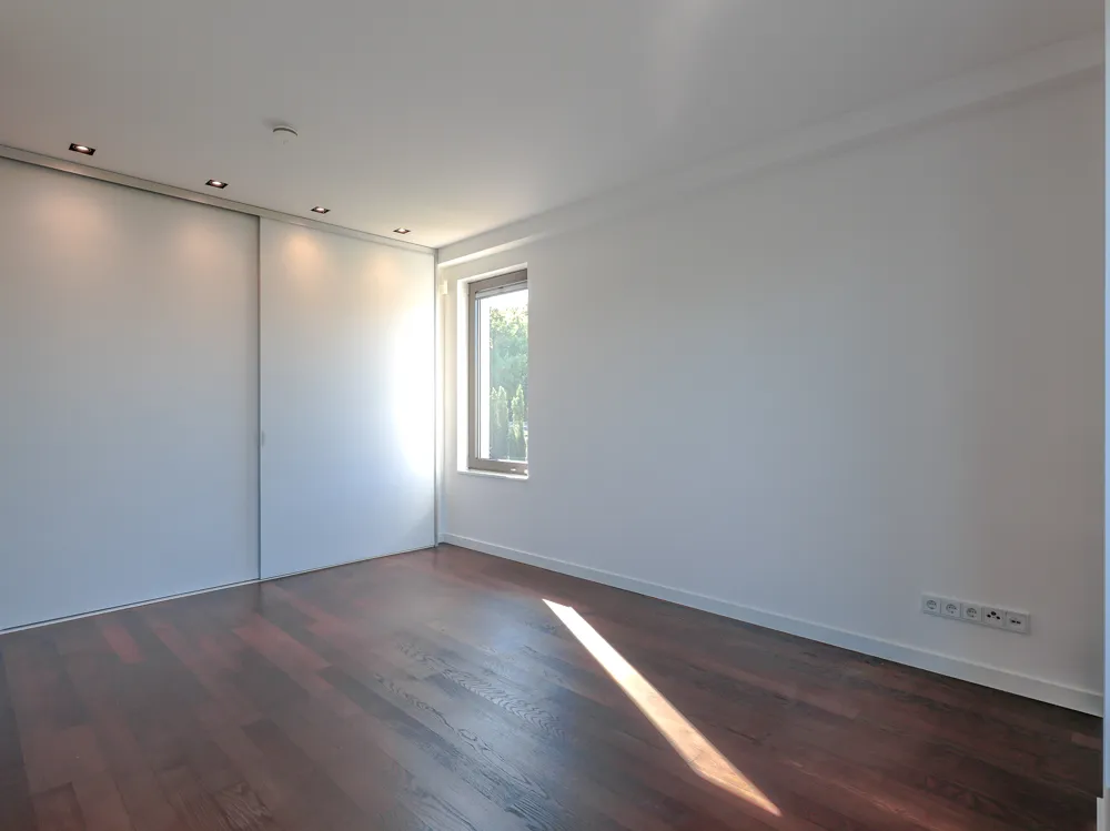 Die Ausstattungsqualität ist durchweg gehoben: raumhohe Innentüren, passgenaue Einbauschränke in nahezu allen Räumen, eine effiziente Wärmepumpe und eine Photovoltaikanlage mit 22 Paneelen unterstreichen den modernen Charakter. Darüber hinaus verfügt das Haus über drei stilvolle Badezimmer, ein Zimmer mit integrierter Infrarot-Sauna sowie einen an den Garten angrenzenden Raum, welcher mit Fenstern ausgestattet und beheizt ist.