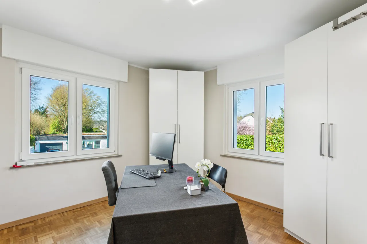 Lohmar zeichnet sich durch seine hervorragende Infrastruktur aus, die eine schnelle Anbindung an umliegende Städte wie Köln und Bonn ermöglicht, sowohl mit dem Auto als auch mit öffentlichen Verkehrsmitteln. Die Umgebung bietet eine Vielzahl von Freizeitmöglichkeiten, darunter weitläufige Wander- und Radwege, die die natürliche Schönheit der Region offenbaren.