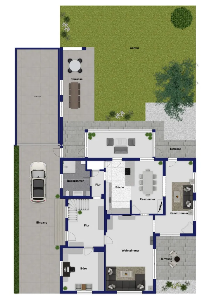 - Große Garage plus drei Stellplätze in der Einfahrt