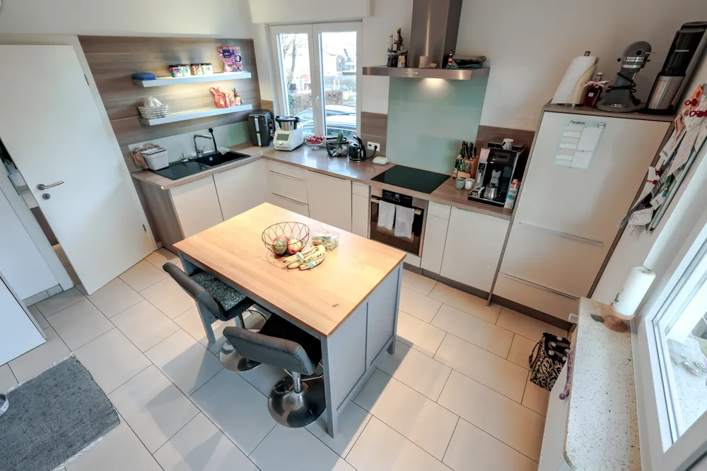 Das Herzstück des Erdgeschosses ist der große Wohn- und Essbereich. Von hier als auch von der Küche haben Sie Zugang auf die große Terrasse! Apropos Küche: diese ist separiert, stammt aus dem Jahr 2014 und ist im Kaufpreis bereits enthalten!