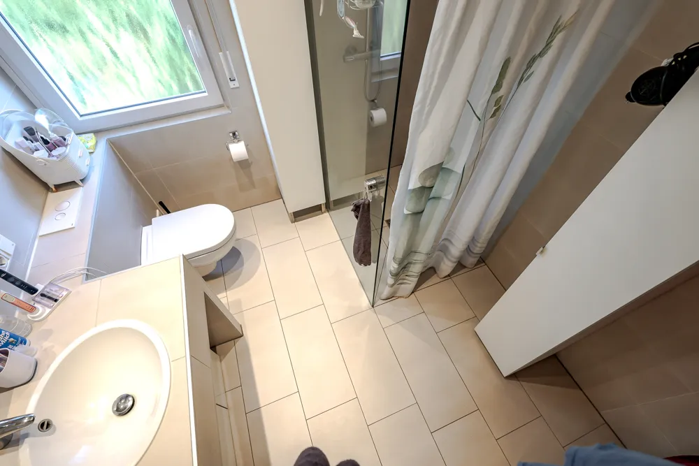 Im Obergeschoss warten gleich drei Schlafzimmer und ein modernes Badezimmer auf Sie. Das Bad ist mit einer ebenerdigen Dusche, WC, Fenster, Waschtisch und Handtuchheizkörper ausgestattet.