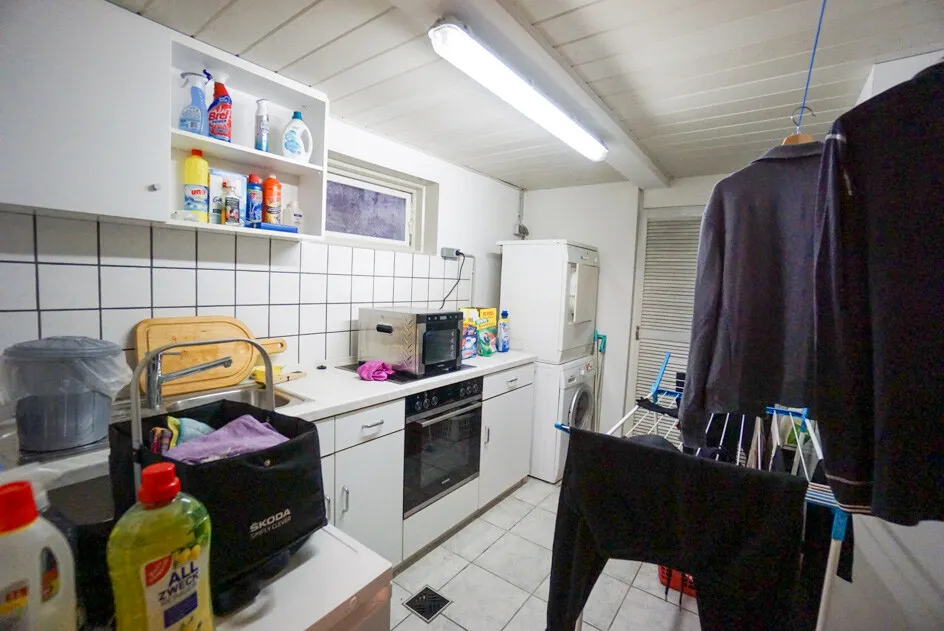 Die Immobilie befindet sich in einer freundlichen Nachbarschaft, die ein angenehmes Wohnumfeld garantiert. Der geflieste und beheizte Keller bietet zusätzlichen Raum und Komfort. Insgesamt präsentiert sich das Haus in einem hervorragend gepflegten Zustand und ist bereit für neue Bewohner, die ein warmes und einladendes Zuhause suchen.