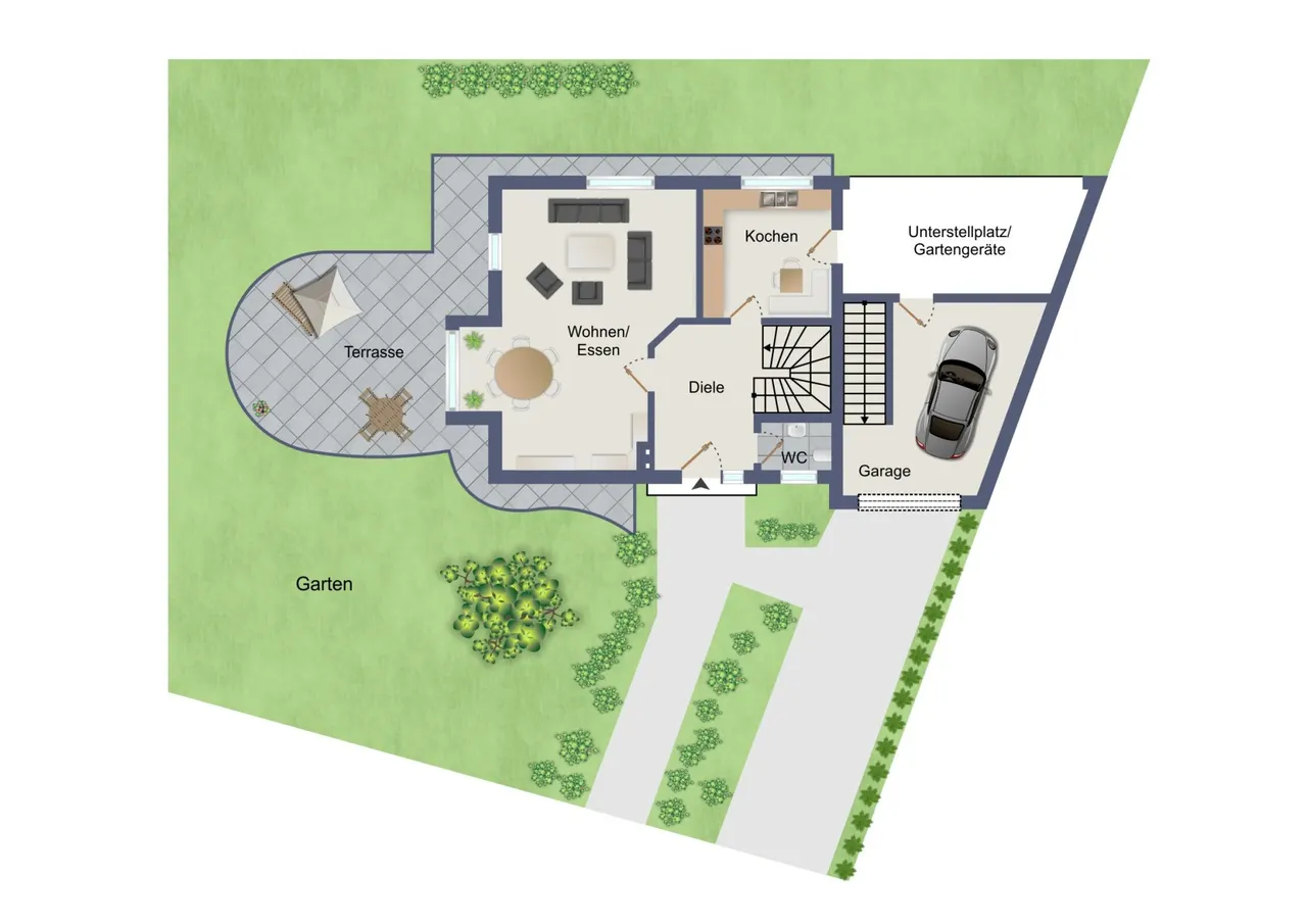 - seitlich angebaute Garage