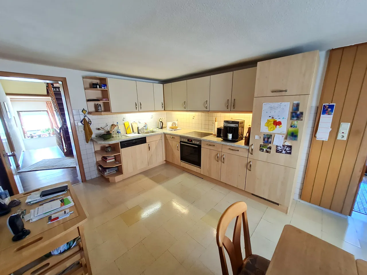 Zur Immobilie gehört auch eine großzügige Scheune aus dem Jahr ca. 1938 mit einer Grundfläche von etwa 10 x 13 Metern. Sie verfügt über einen hohen Hauptraum, einen zusätzlichen Raum sowie einen ehemaligen Stallbereich – vielseitig nutzbar, z. B. als Werkstatt, Lager oder Hobbyraum. Das Wohnhaus bietet rund 180 m² Wohnfläche und eignet sich dank seiner durchdachten Raumaufteilung ideal für eine oder auch zwei Parteien.