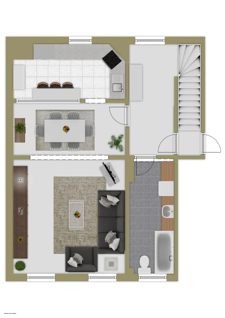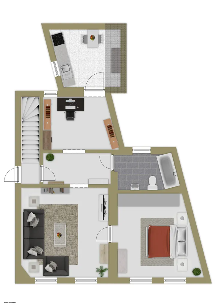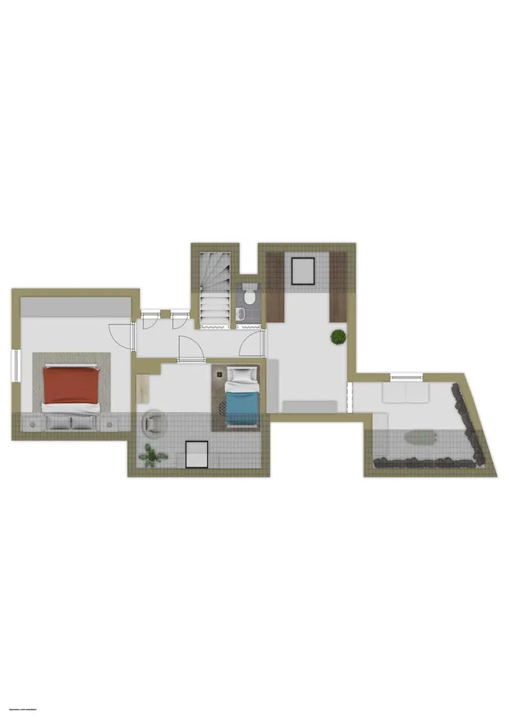 - OG rechts: ca. 43 m² – aktuell vermietet für 410 €