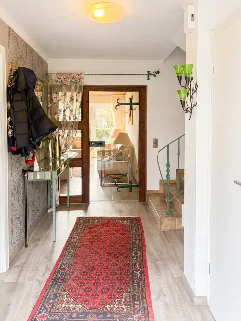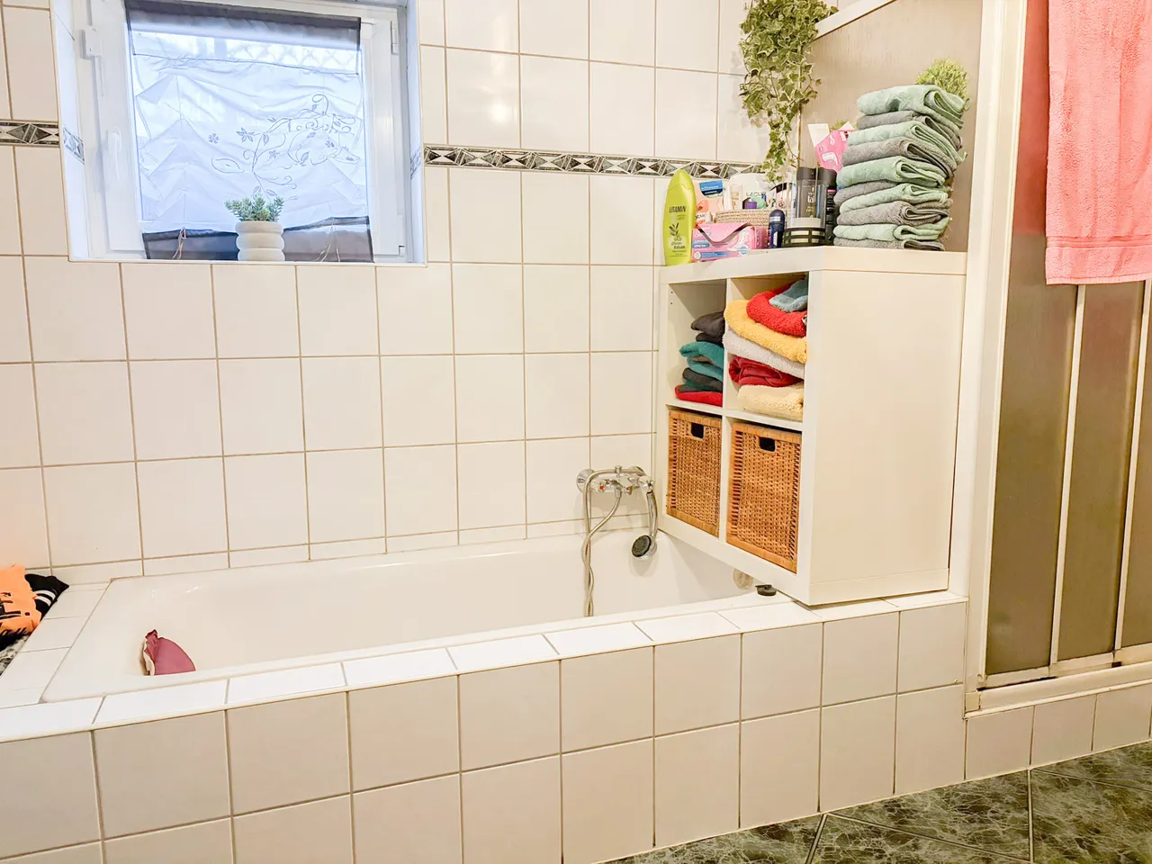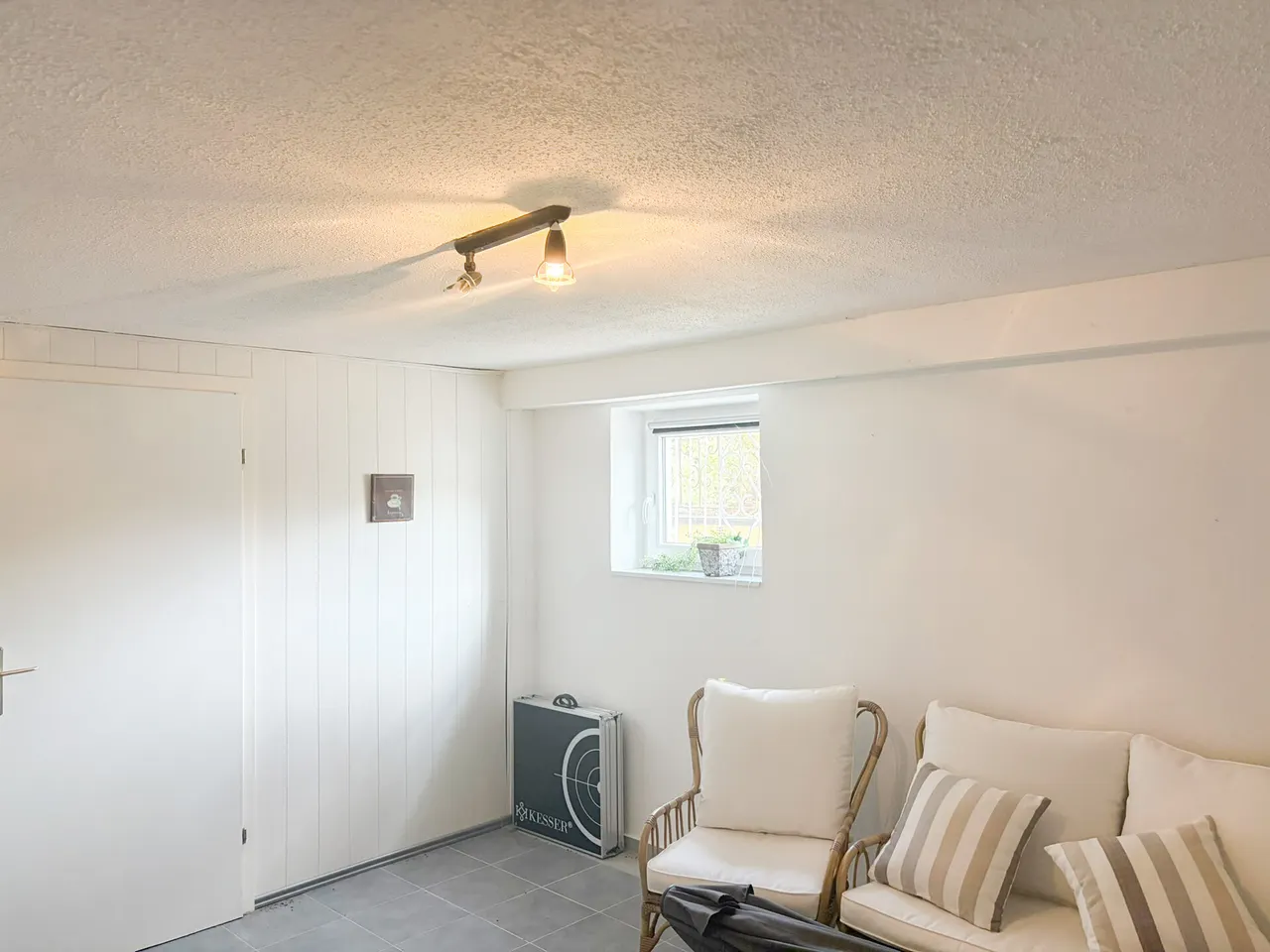 Im Untergeschoss befindet sich eine 3-Zimmer-Küche-Bad umfassende Einliegerwohnung mit separatem Zugang. Sie verfügt über eine eigene Terrasse und ist aktuell für eine monatliche Warmmiete von 380,– € vermietet. Das Besondere: Die Wohnung lässt sich bei Bedarf ohne großen Aufwand wieder komplett in die Haupteinheit integrieren, um das gesamte Haus als eine Einheit zu nutzen.