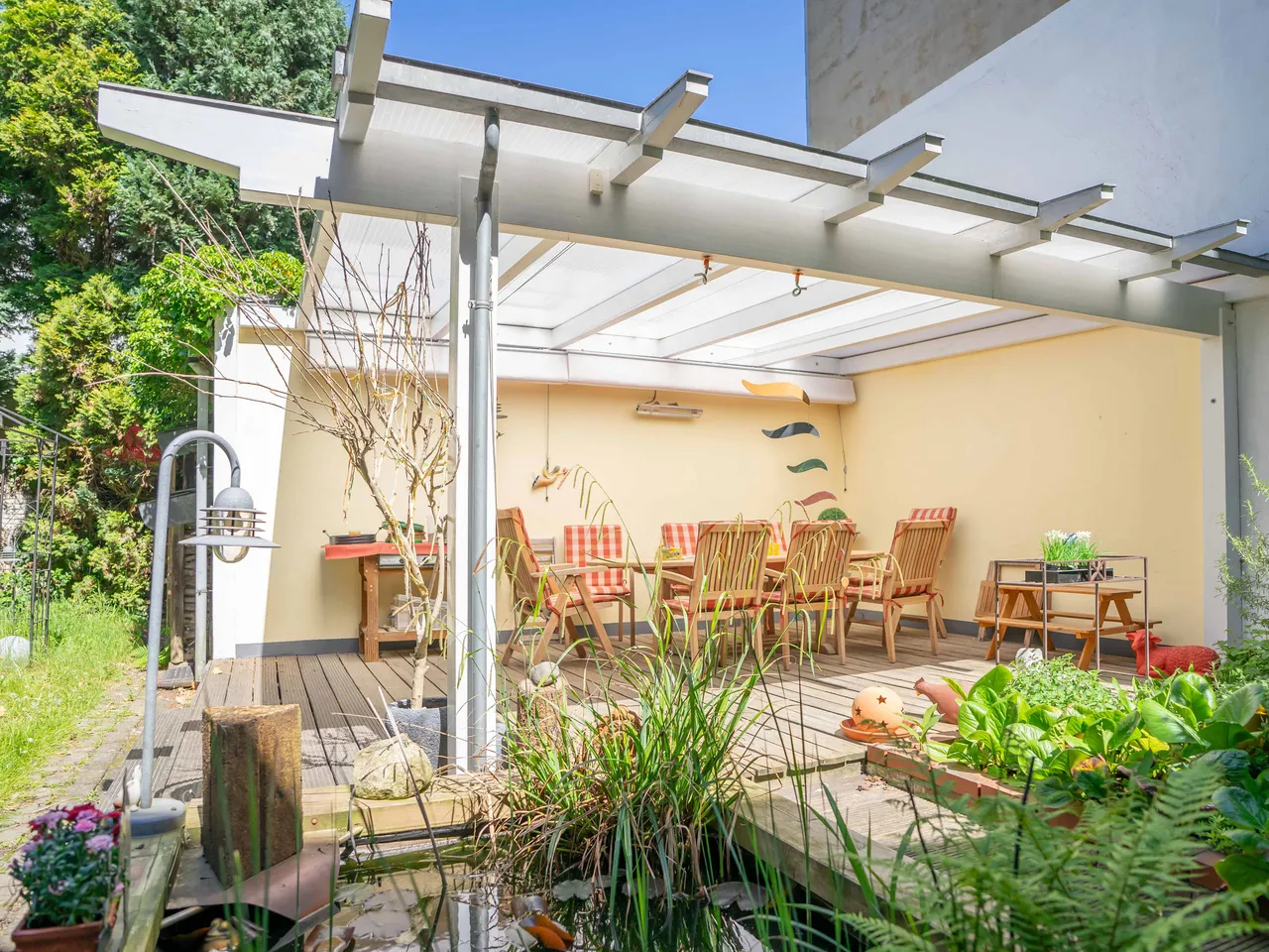 Die rund 175 m² große Wohnung im 1. Obergeschoss verfügt über 6 geräumige Zimmer - zum Teil Durchgangszimmer - eine schöne Küche, ein großes Bad mit Wanne, Dusche und Fenster, ein Gäste-WC und den Zugang in den gemütlich angelegten Garten mit überdachter Terrasse.