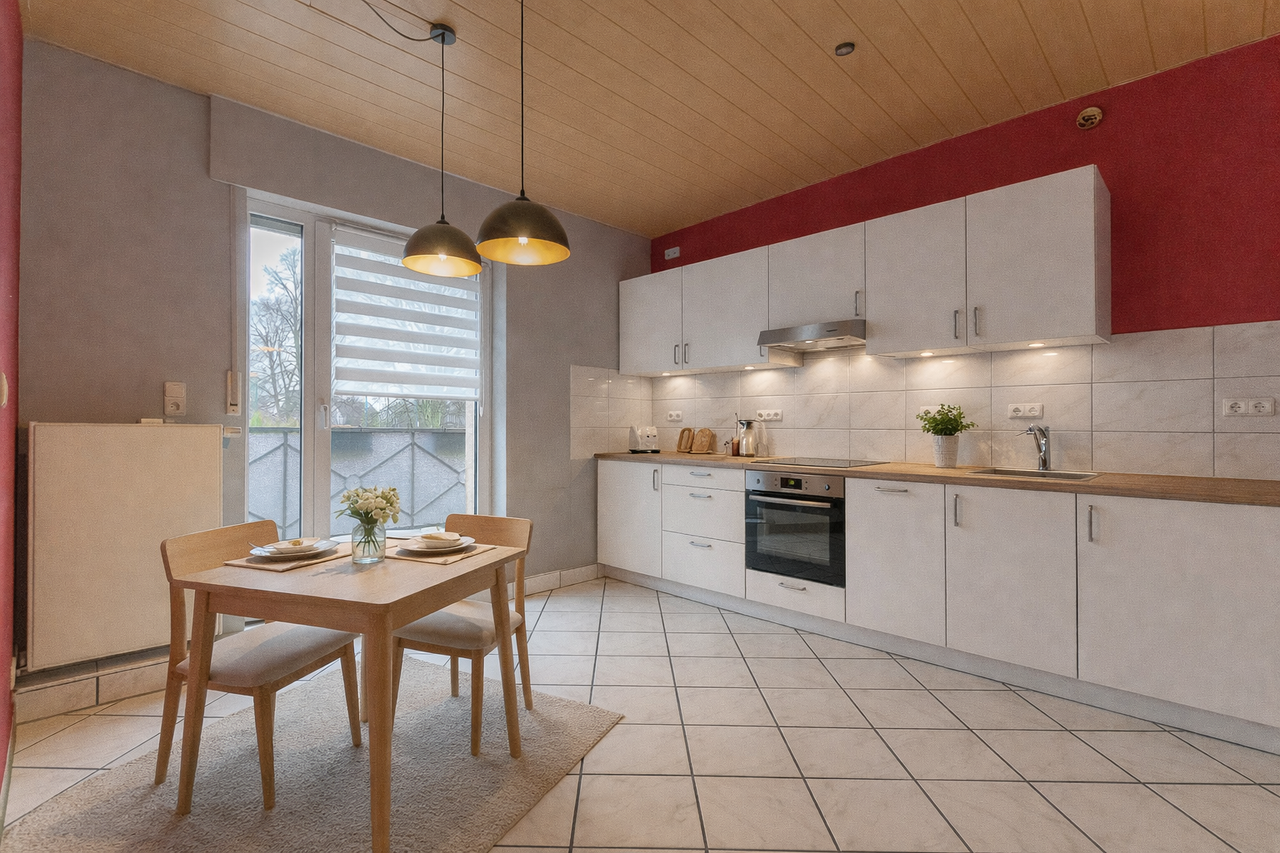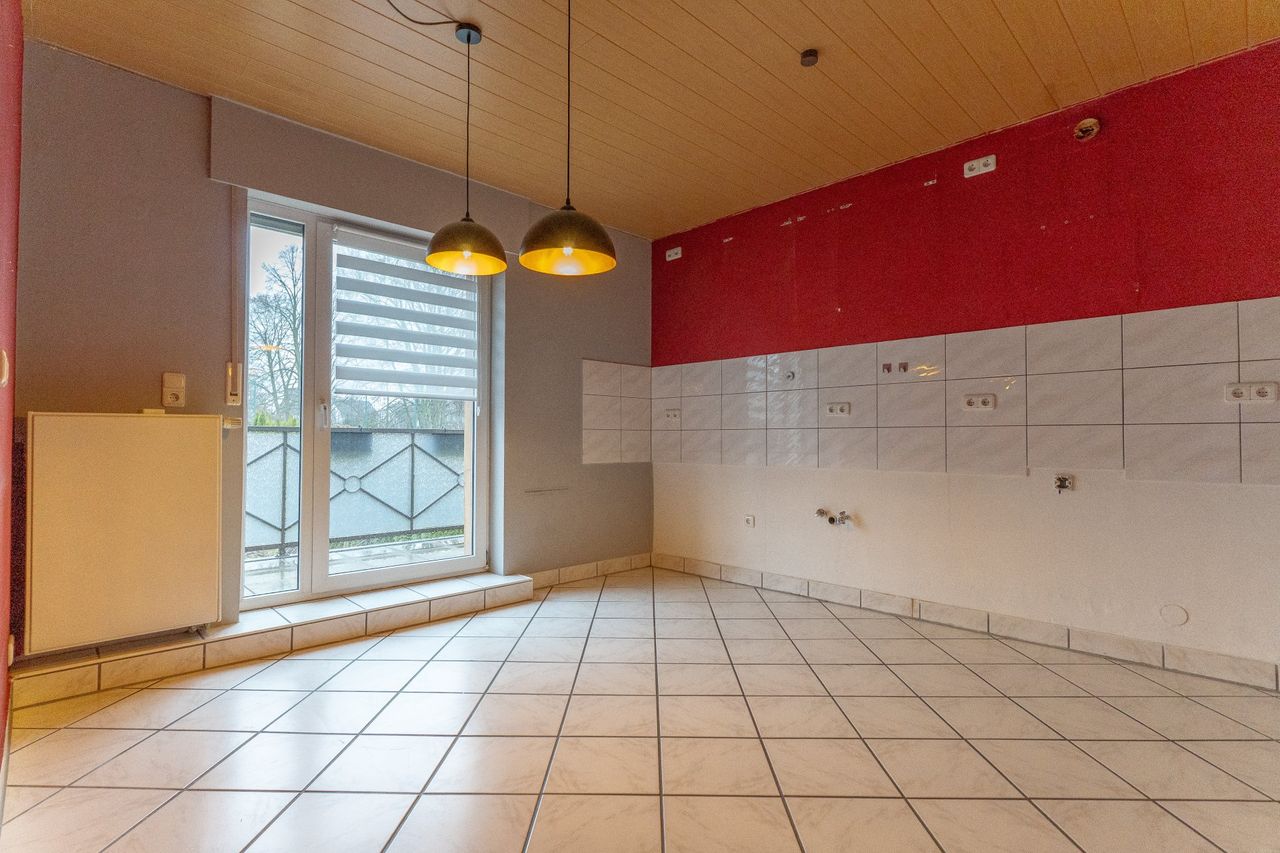 Ebenfalls von der Diele aus erreichbar ist der Wohn-/ und Essbereich, der sich rechts neben der Küche befindet. Der Raum bietet ausreichend Stellfläche für eine geräumige Wohnlandschaft sowie einen separaten Essbereich.