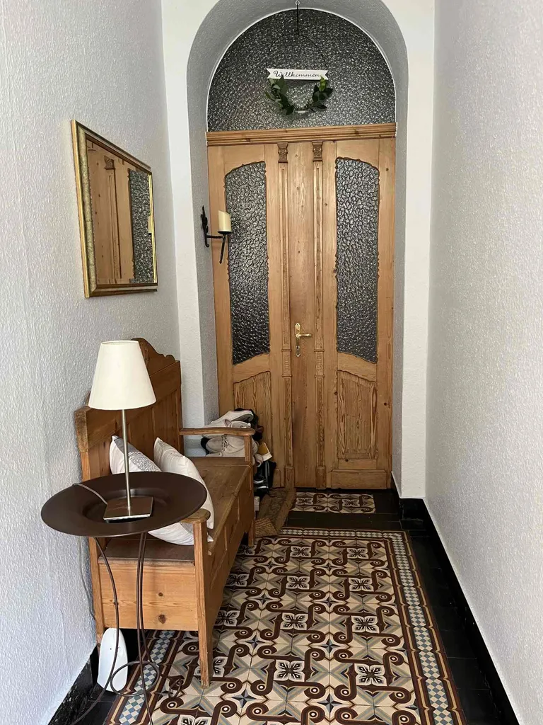 Den Eigentümern ist es gelungen, den Charme des Hauses trotz der verschiedenen Modernisierungen aufrecht zu erhalten. So genießt man in diesem Haus die perfekte Mischung zwischen Altbau und Moderne! Hier die wesentlichen Ausstattungsdetails: toll erhaltene Holz-Innentüren, Fußböden in den Wohnräumen aus Holz, Dielenböden bzw. Parkettboden, Küche und Bäder gefliest,extra hohe Decken, teilweise mit originalem Stuck verziert, Fenster aus Kunststoff, Wannenbad im EG, Duschbad im OG und Wannenbad im DG, auf jeder Etage jeweils ein separates WC im Zwischengeschoss, toll erhaltenes Holztreppenhaus, Gas-Zentral-Heizung aus 2000.