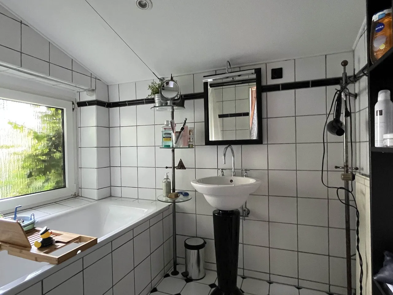 Zusätzlich gibt es im Zwischengeschoss ein Wannenbad sowie ein separates WC.