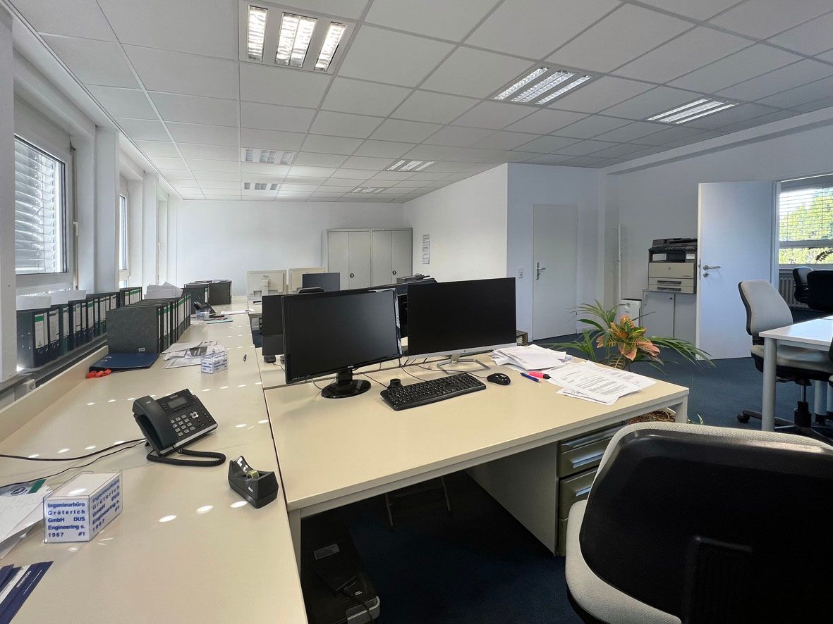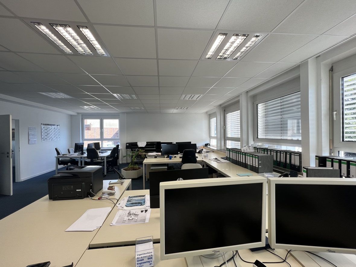 Die Bürofläche befindet sich im 1. Obergeschoss und besteht aus einem großen sowie zwei kleineren Büroräumen. Die separate Teeküche wird mit dem Nachbarmieter geteilt. Ein Aufzug ist nicht vorhanden.