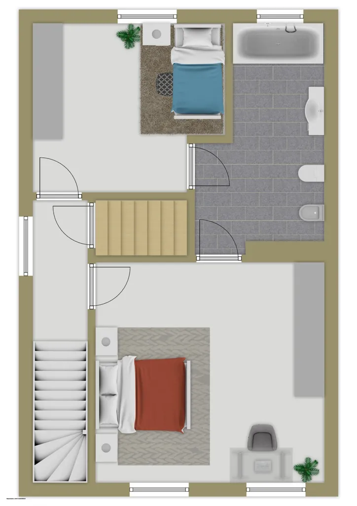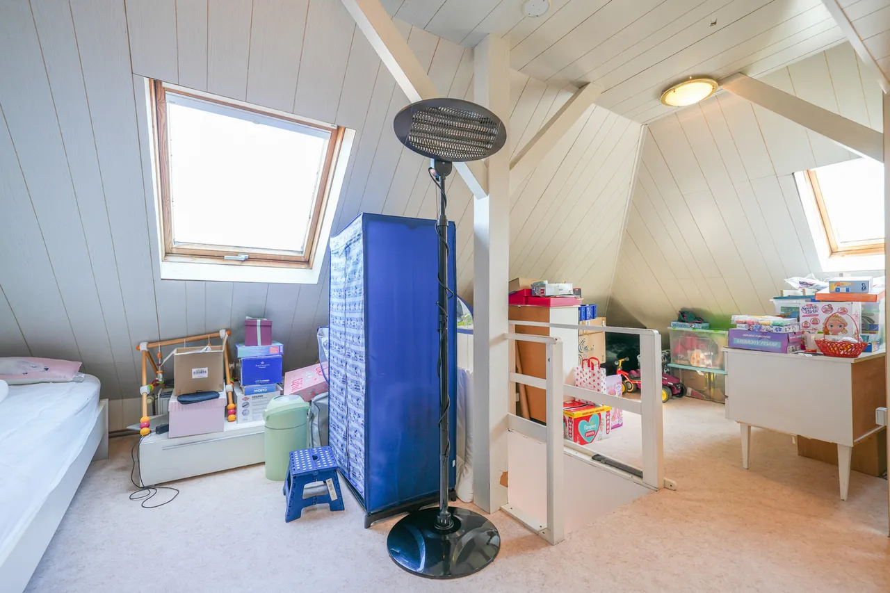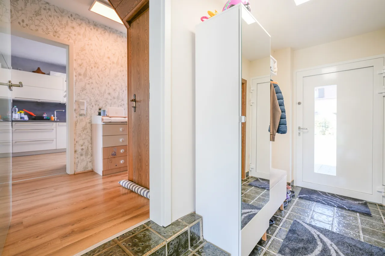 Das Obergeschoss bietet ein großzügiges Schlafzimmer sowie ein Kinderzimmer. Beide Zimmer haben direkten Zugang zu einem neu realisierten Tageslichtbad. Die Badewanne trägt zu entspannenden Wohlfühlmomenten bei. Das Dachgeschoss ist ein flexibler, offener Raum, der sich perfekt als Büro, Hobbyraum oder für zusätzlichen Stauraum nutzen lässt – ganz nach Ihren individuellen Bedürfnissen.