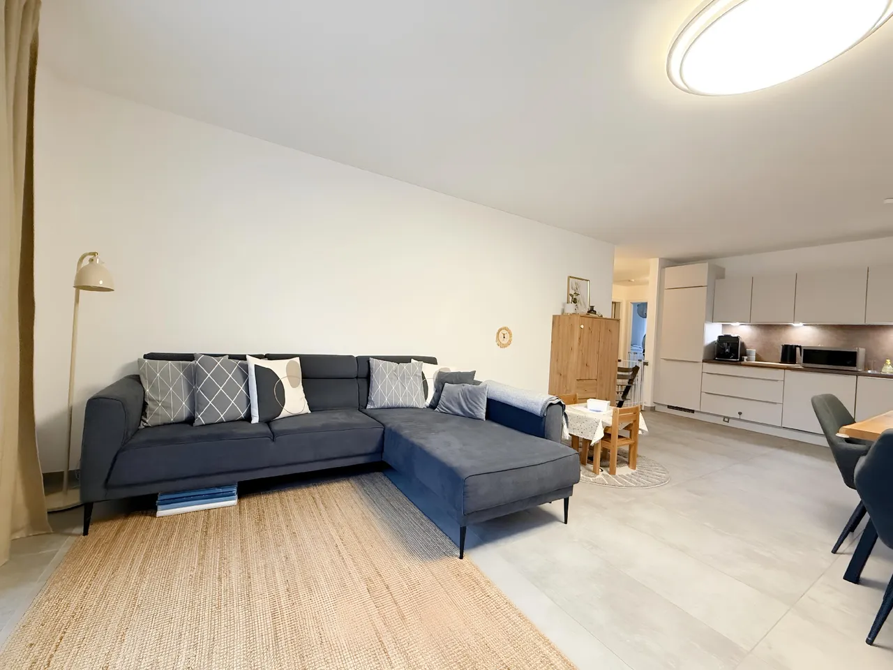 Diese moderne 3-Zimmer-Erdgeschosswohnung aus dem Baujahr 2019 überzeugt mit einem großzügigen, lichtdurchfluteten Wohn-/Essbereich mit Platz für eine offene Küche, zwei gut geschnittenen Schlafzimmern sowie einem stilvollen Bad mit bodengleicher Dusche und Wanne; ein separates Gäste-WC rundet den Grundriss ab. Große Fensterfronten, großformatige Feinsteinzeugfliesen und Fußbodenheizung schaffen ein angenehm zeitgemäßes Wohnambiente. Vom Wohnbereich geht es direkt auf die weitläufige Terrasse mit angrenzender Rasenfläche ideal für den ersten Kaffee am Morgen oder entspannte Abende im Freien. Vor dem Einzug werden alle Wände frisch weiß gestrichen, die vorhandene Einbauküche verbleibt nicht, sodass Sie Ihre eigene Küchenplanung frei umsetzen können. Praktisch sind die zur Wohnung gehörende Garage und der zusätzliche Abstellraum im Dachgeschoss. Insgesamt präsentiert sich die Wohnung in sehr gepflegtem, nahezu neuwertigem Zustand perfekt für Singles, Paare oder die kleine Familie, die ebenerdiges Wohnen mit hochwertigen Details und schönen Außenflächen schätzen.