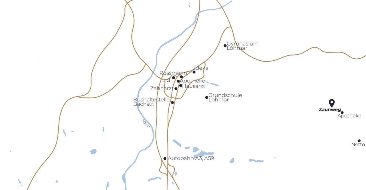 Eine hervorragende Anbindung an den öffentlichen Nahverkehr mit Buslinien zu umliegenden Städten und Bahnhöfen ist gegeben. Die Nähe zu größeren Städten wie Köln und Bonn gewährleistet zudem einen einfachen Zugang zu Arbeitsplätzen und kulturellen Angeboten.
