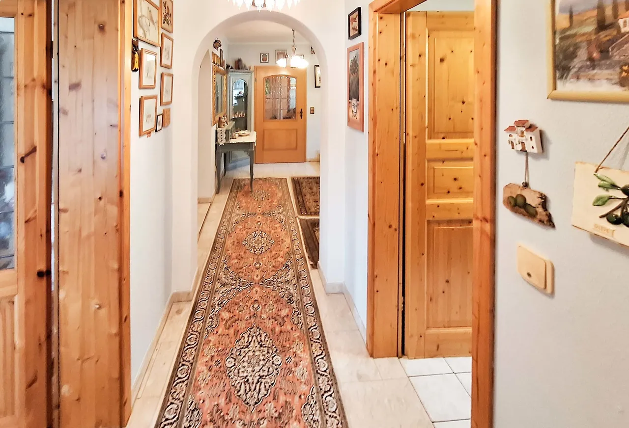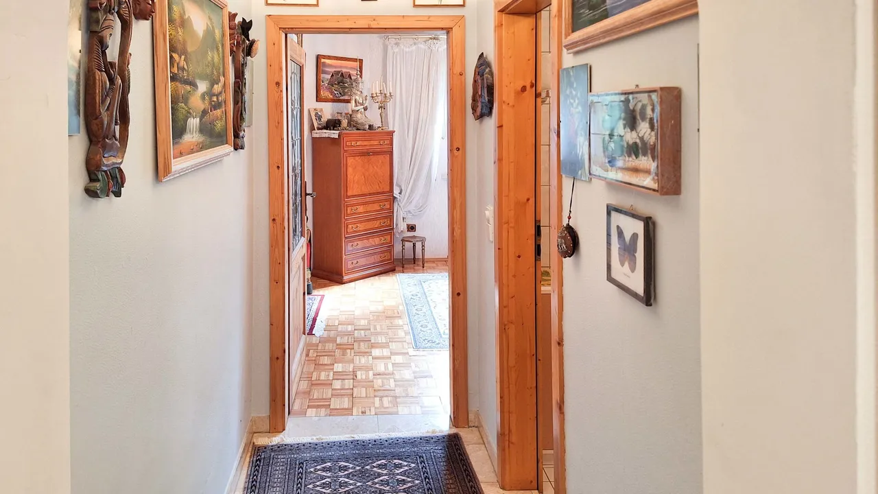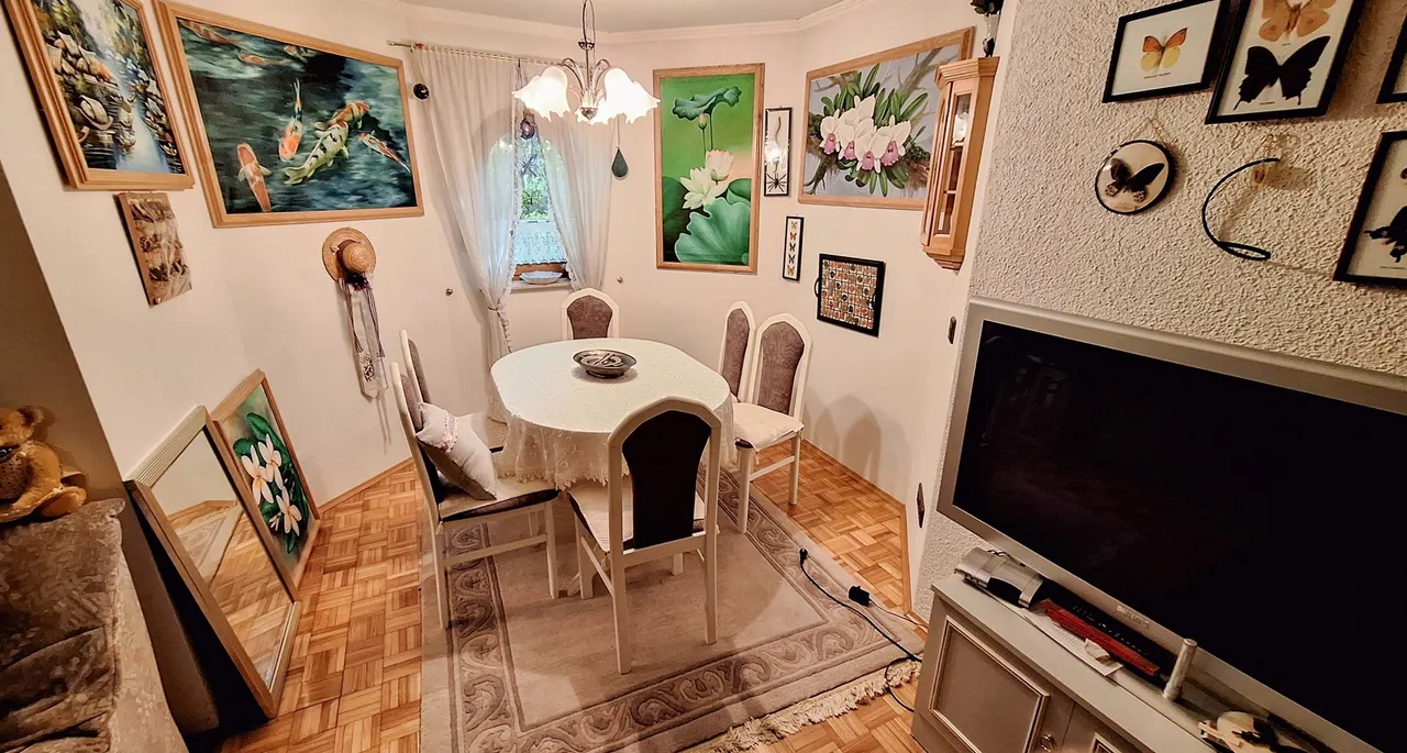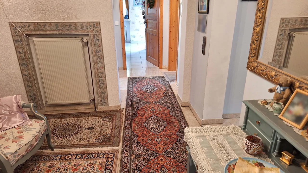 Im Obergeschoss befinden sich zwei Schlafzimmer, ein Badezimmer sowie ein Balkon. Der ausgebaute Spitzboden bietet zwei weitere, vielseitig nutzbare Zimmer. Der ebenerdig gelegene Keller überzeugt mit direktem Zugang zur Garage, einer Waschküche mit integrierter Sauna, zwei beheizten, ausgebauten Zimmern sowie einem praktischen Hauswirtschaftsraum. Das Wohnzimmer des Kellergeschosses verfügt über einen gemütlichen Kachelofen. Ein ideales Zuhause für Familien mit Platzbedarf!