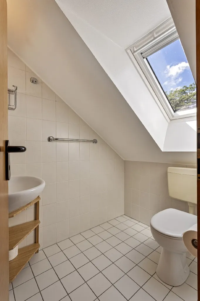 In der 1. Etage betreten Sie Ihr Zuhause über einen kleinen wohnlichen Flur mit Garderobe, im Anschluss sind zwei gemütliche Zimmer und ein geräumiges Schlafzimmer vorhanden. Diese Etage wird vervollständigt, durch das moderne Bad mit Fenster, welches Sie begeistern wird: