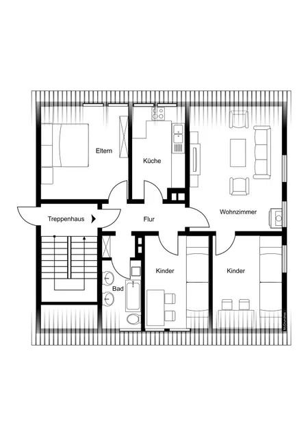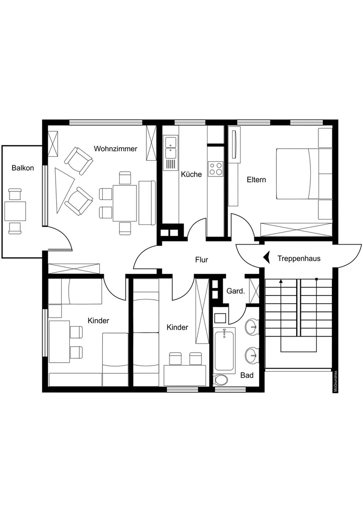 Wohnung 4: 4 Zimmer, ca. 82,92 m² – vermietet seit 2020, Kaltmiete 877,66 € (ca. 10,58 €/m²)