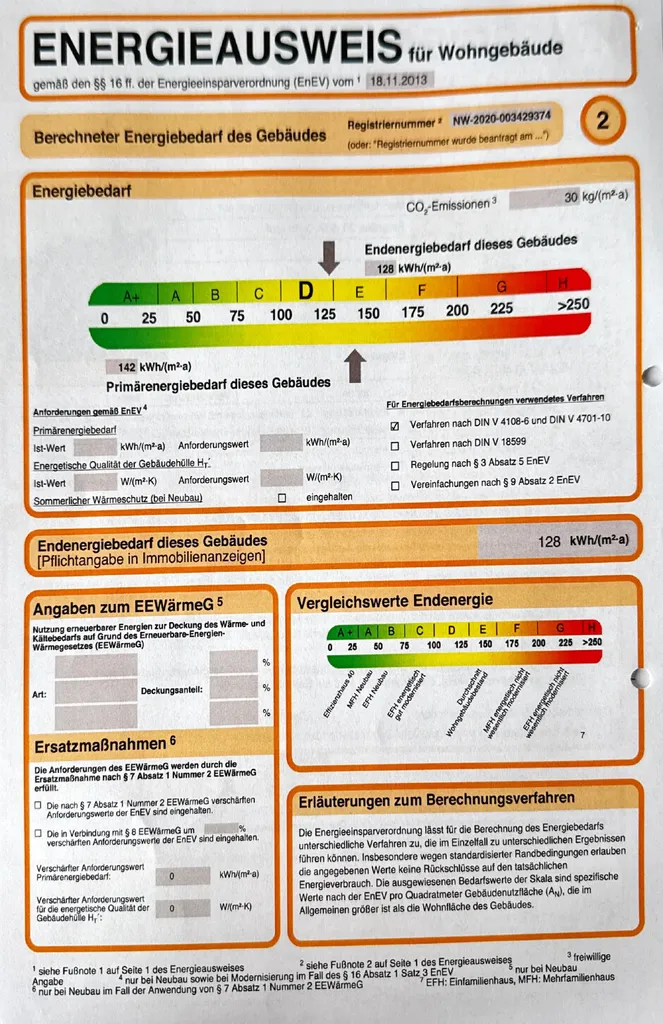| Endenergiebedarf 128 kWh/(m²*a) |