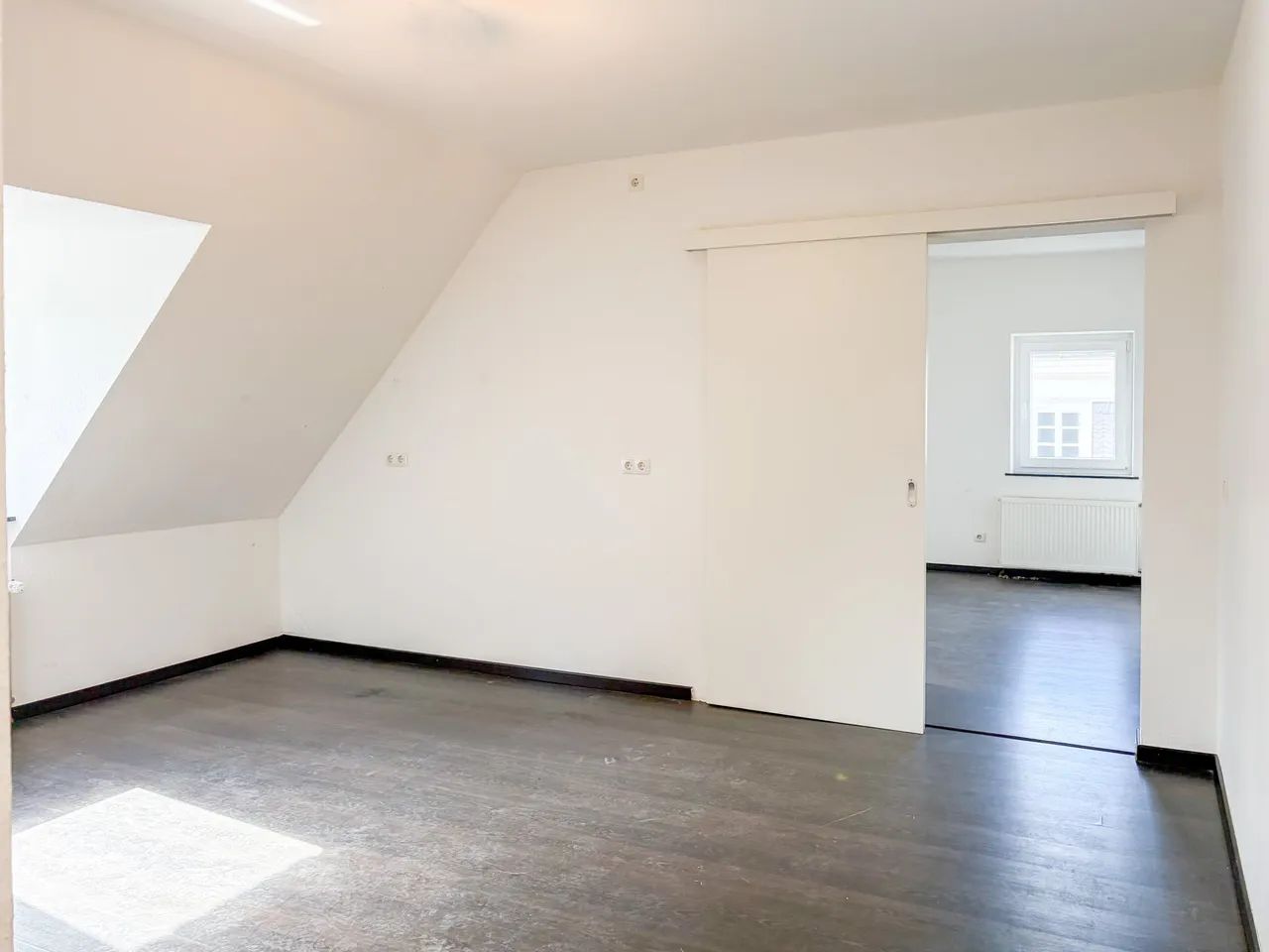Diese großzügige 2-Zimmer-Wohnung im 2. Obergeschoss bietet auf 78 m² Wohnfläche lichtdurchflutete Räume, kombiniert mit einem durchdachten Grundriss. Die große Wohnküche ist das Highlight der Wohnung, denn ein großzügiger Essbereich findet hier seinen Platz. Die Wohnung ist mit hochwertigen Böden; Laminat und Fliesen ausgestattet, außerdem verfügen die Räume über neue, isolierverglaste Fenster aus dem Jahr 2026. Das Tageslichtbad mit Dusche und Fenster sorgt für funktionalen Komfort im Alltag. Ein praktischer Waschmaschinenanschluss ist bereits direkt in der Küche integriert. Ein eigener Kellerraum rundet das Angebot ab und bietet zusätzlichen Stauraum.