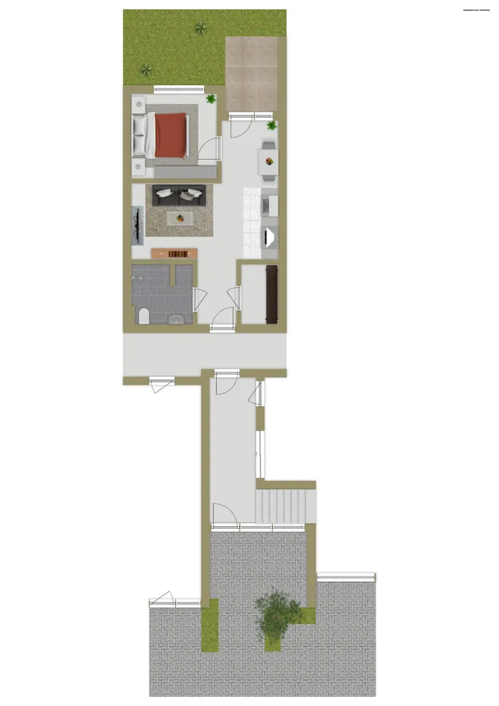 - Moderne 2-Zimmer-Aufteilung: Wohn-, Ess- und Kochbereich, Schlafzimmer