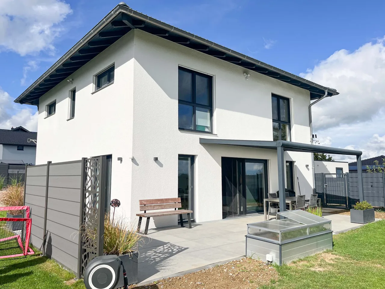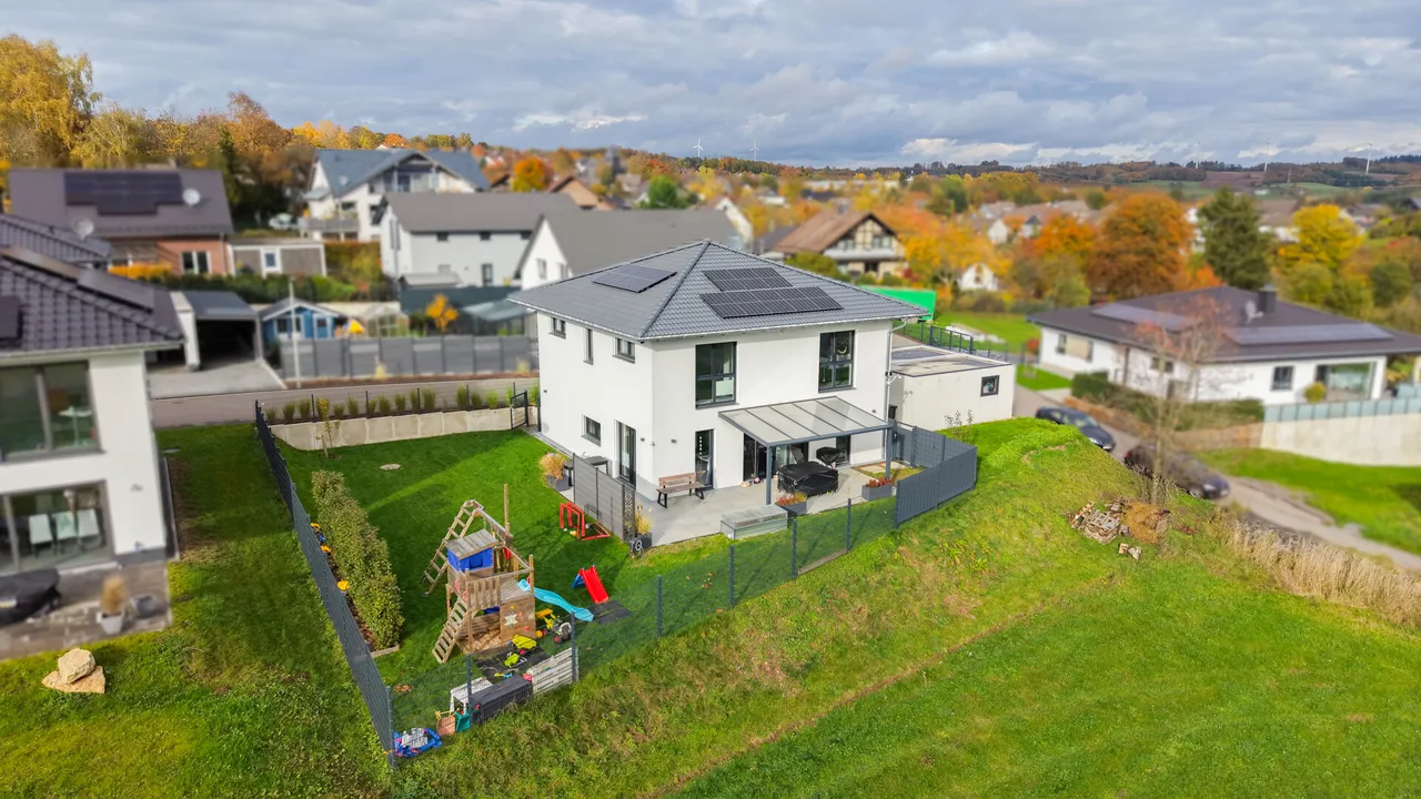 Dieses im Jahr 2022 erbaute Einfamilienhaus überzeugt mit zeitgemäßer Ausstattung, durchdachtem Grundriss und einer Wohnfläche von ca. 148 m² auf einem Grundstück von 730 m². Die Kombination aus energieeffizienter Haustechnik, modernem Design und einer idyllischen Lage mit herrlicher Aussicht macht dieses Zuhause besonders attraktiv.