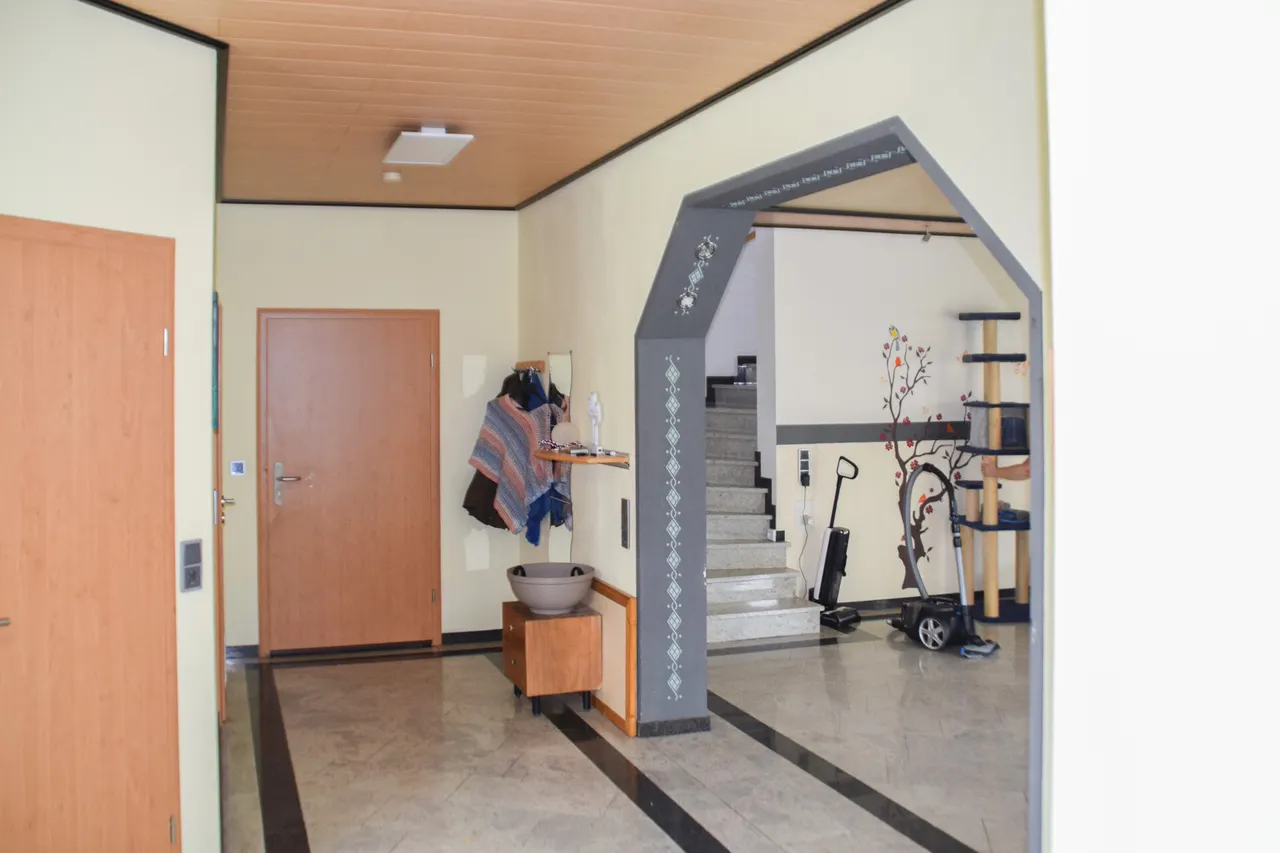 Im Obergeschoss befinden sich neben dem Schlafzimmer mit angrenzendem Badezimmer, ein Hauswirtschaftsraum und ein ca. 136 m² großes Studiozimmer mit Empore.