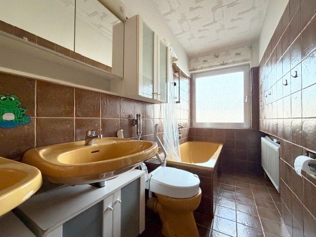 Im Obergeschoss befinden sich das Elternschlafzimmer, zwei mögliche Kinderzimmer, die bei Bedarf ohne großen Aufwand zu einem großen Zimmer verbunden werden können sowie ein Wannenbad mit Fenster.
