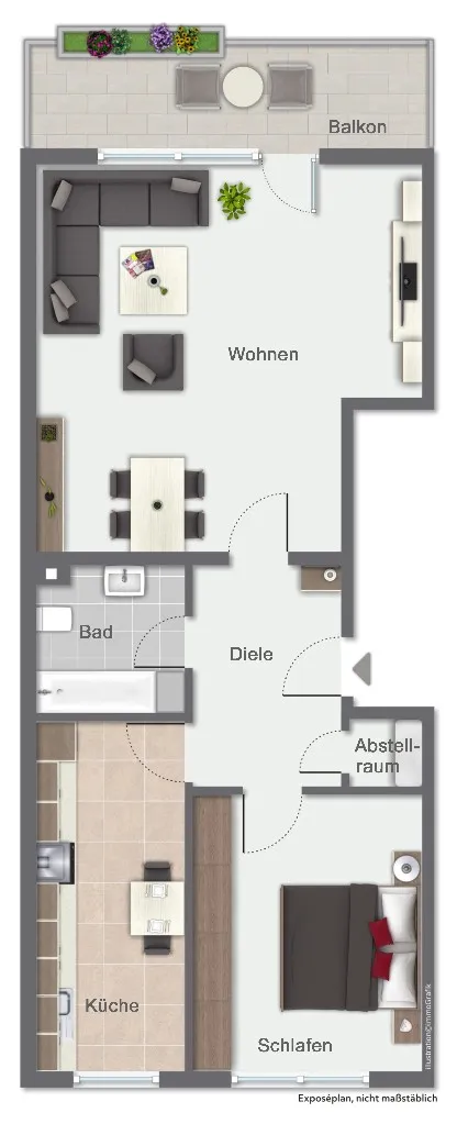Diese 2-Zimmer-Wohnung aus dem Baujahr 1982 bietet genau das, was eine Einzelperson oder ein junges Paar für einen komfortablen Start in ein eigenes Zuhause sucht.