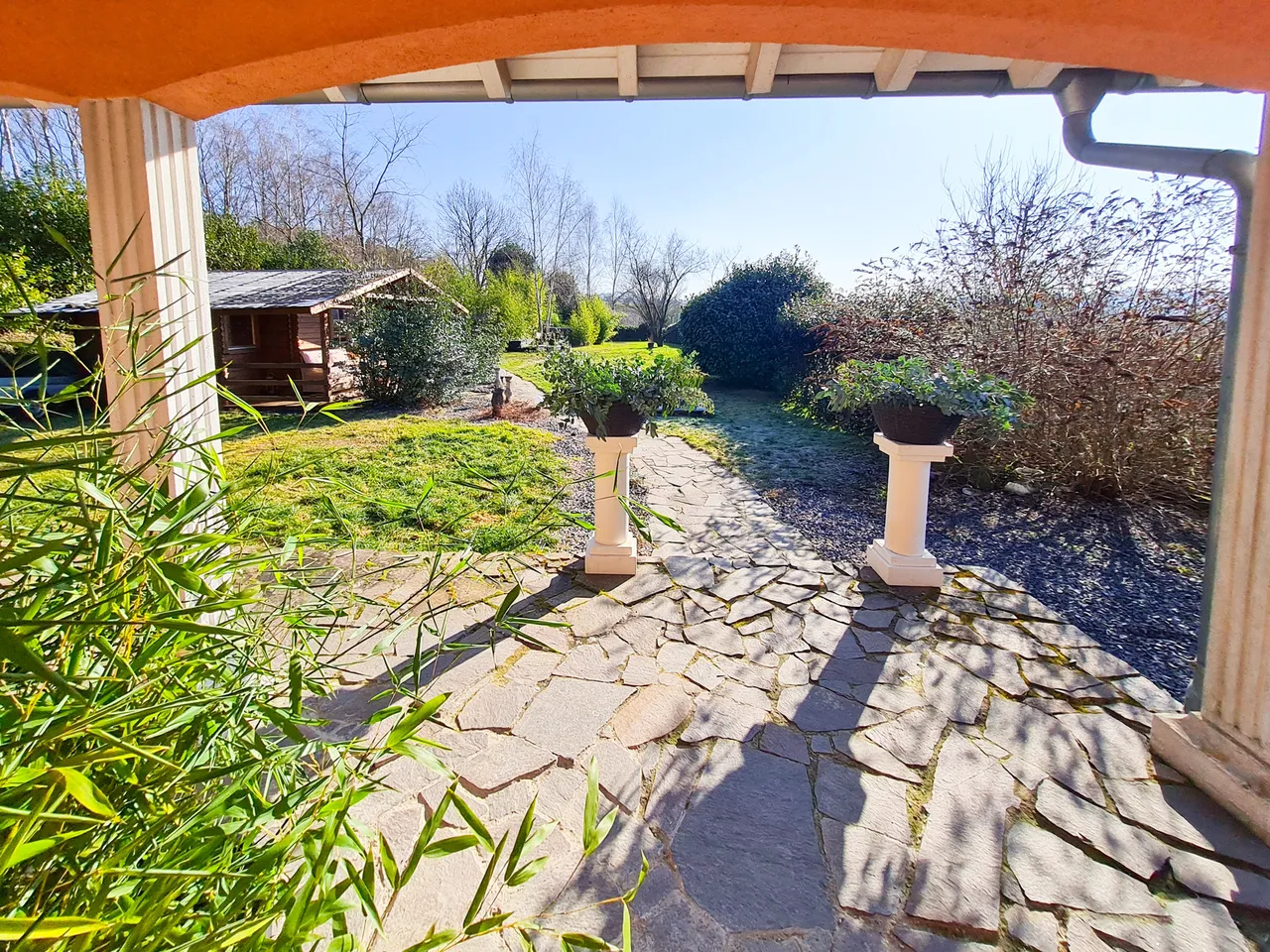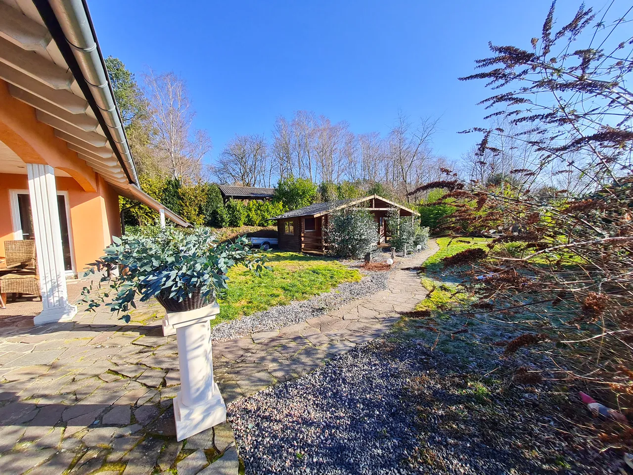 Das weitläufige Grundstück von über 2.500 m² ist ein wahres Paradies für Naturfreunde und Kleintierhalter. Über eine eigene Zufahrt gelangen Sie direkt zum Innenhof und zur Doppelgarage. Im hinteren Bereich des Hauses erwarten Sie ein idyllischer Garten mit Gästehaus, ein Saunahaus mit gemütlicher Holzbefeuerung, ein kleiner Außenpool sowie eine großzügige, überdachte Terrasse mit integriertem Pizzaofen – der ideale Ort, um entspannte Stunden mit Familie und Freunden zu verbringen.