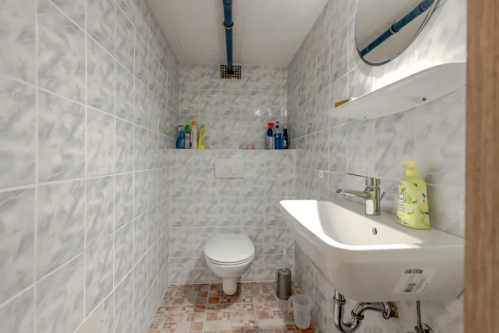 Das Untergeschoss verfügt über drei beheizte Hobbyräume, die vielseitig nutzbar sind – etwa als Gästezimmer, Büro, Werkstatt oder Fitnessbereich. Zudem stehen hier eine Waschküche, ein Badezimmer mit Dusche, ein separates WC sowie der Heizungskeller zur Verfügung.