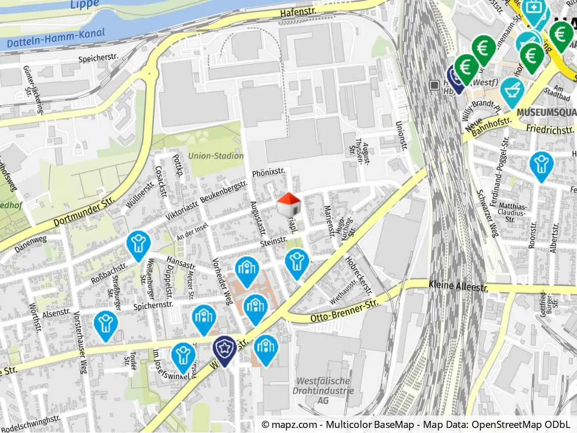 Die hervorragende Lage in City-Nähe bietet Ihnen nicht nur Zugang zu zahlreichen Annehmlichkeiten und Einkaufsmöglichkeiten in der Hammer Innenstadt, sondern auch eine gute Anbindung an das öffentliche Verkehrsnetz – fußläufig in 5 Minuten ist der Hauptbahnhof erreichbar, von hier kommen Sie mit Bus und Bahn bequem zu Ihrem Zielort.