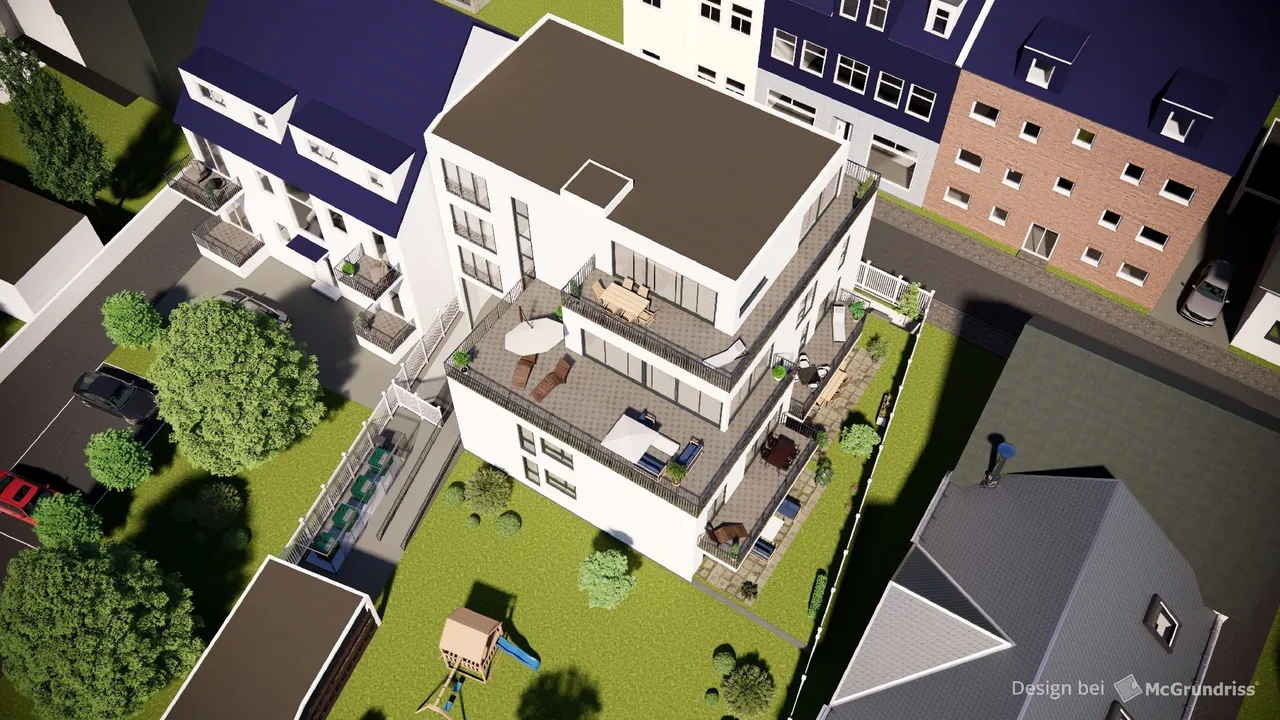 Das hier geplante Neubauhaus bietet in einer sackgassenähnlichen Ruhiglage lediglich 9 Wohnungen.