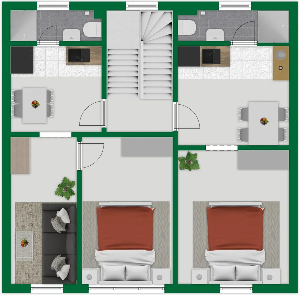 Ein besonderer Vorteil: Einheit 1 und 2 lassen sich sehr gut zu einer großen Erdgeschosswohnung zusammenführen, wodurch zusätzlicher Wohnwert geschaffen werden kann.