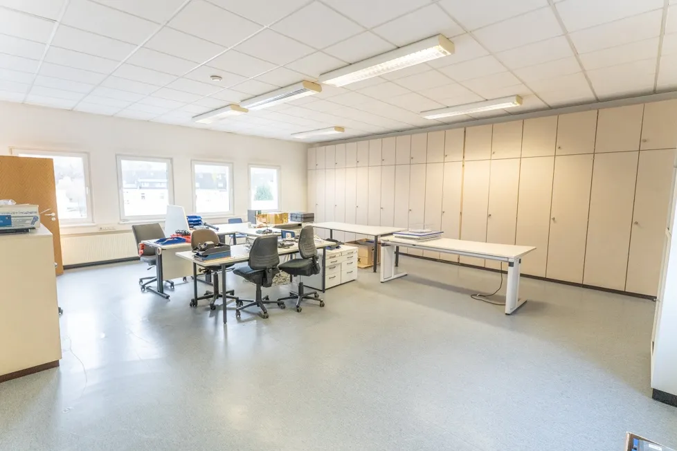 Ein besonderer Vorteil der Immobilie ist die hohe Flexibilität der Raumstruktur. Durch das vorhandene Ständerwerk lässt sich die Aufteilung der Räume bei Bedarf individuell anpassen, sodass sowohl offene Arbeitsbereiche als auch zusätzliche Einzel-/ oder Großraumbüros realisierbar sind.