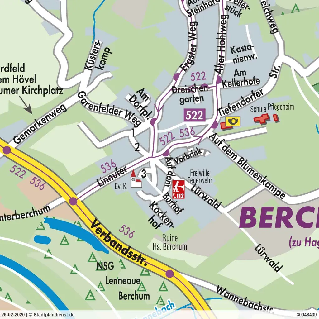 Berchum ist ein beliebter Stadtteil im Nordosten von Hagen. Mit seinen derzeit ca. 1.600 Einwohnern besitzt der idyllische Stadtteil einen dörflichen Charakter. Die Wälder rund um Berchum laden zu herrlichen Spaziergängen. ein. Ein Kindergarten und eine Grundschule sind mit kurzen Fußwegen erreichbar. Weiterführende Schulen sind mittels Busverbindung in Hagen und Hohenlimburg unproblematisch erreichbar. Berchum ist insgesamt verkehrsgünstig gelegen. Sie gelangen schnell auf die Autobahnen A1 und A46. Das wachsende Einkaufsgebiet im Stadtteil Hohenlimburg-Elsey oder Hagen-Boele ist ideal für Besorgungen des täglichen Bedarfs.